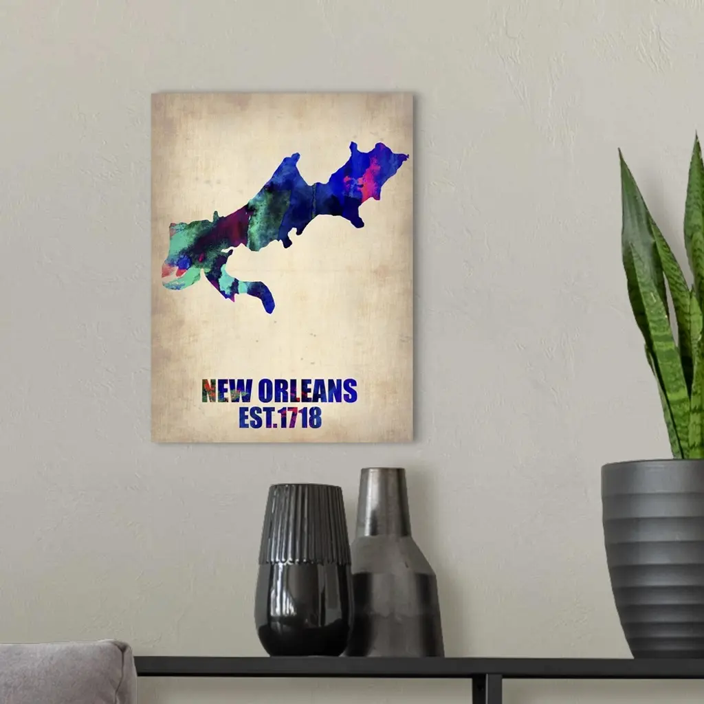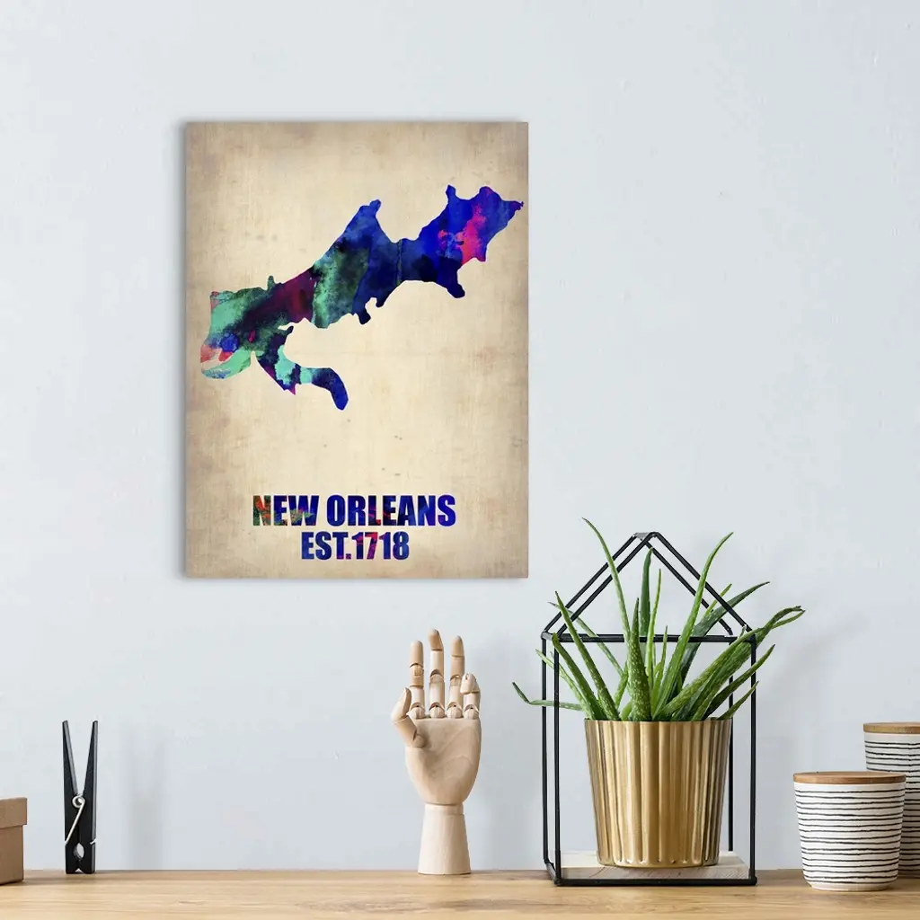 New Orleans Watercolor Map wall art for home and office decor. Discover canvas art prints, photos, mural, big canvas art and framed wall art in GreatBigCanvas.com's varied collections.