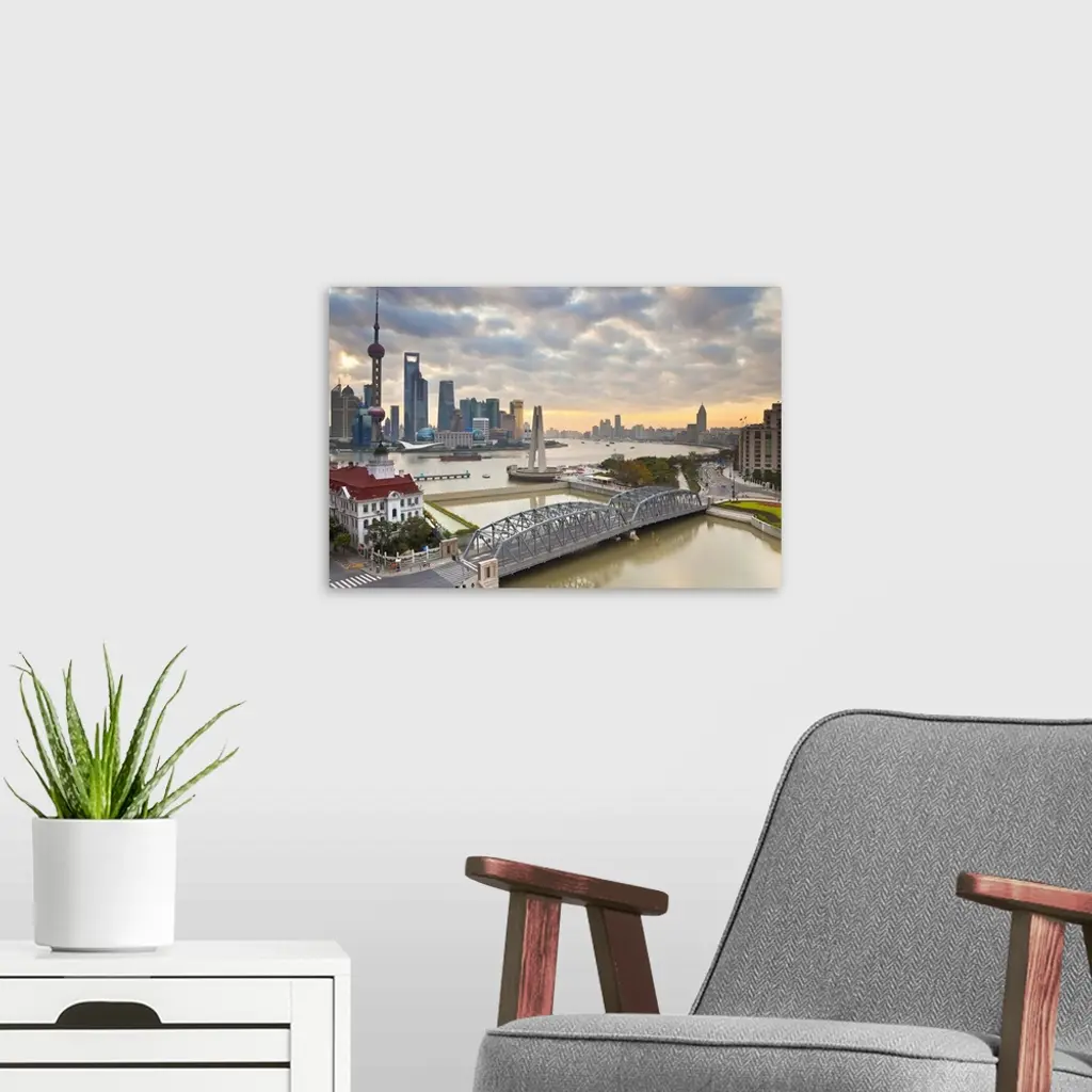 New Pudong skyline, Waibaidu Bridge, Shanghai; China wall art for home and office decor. Discover canvas art prints, photos, mural, big canvas art and framed wall art in GreatBigCanvas.com's varied collections.