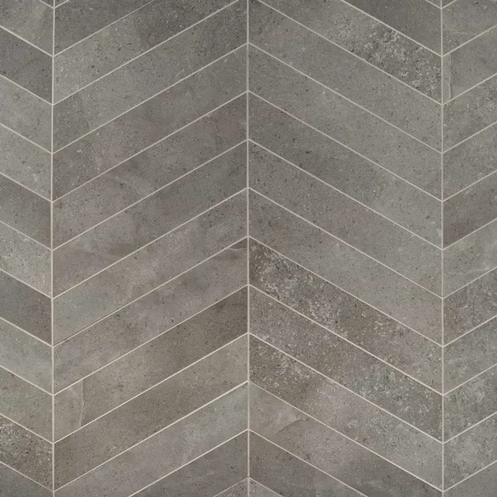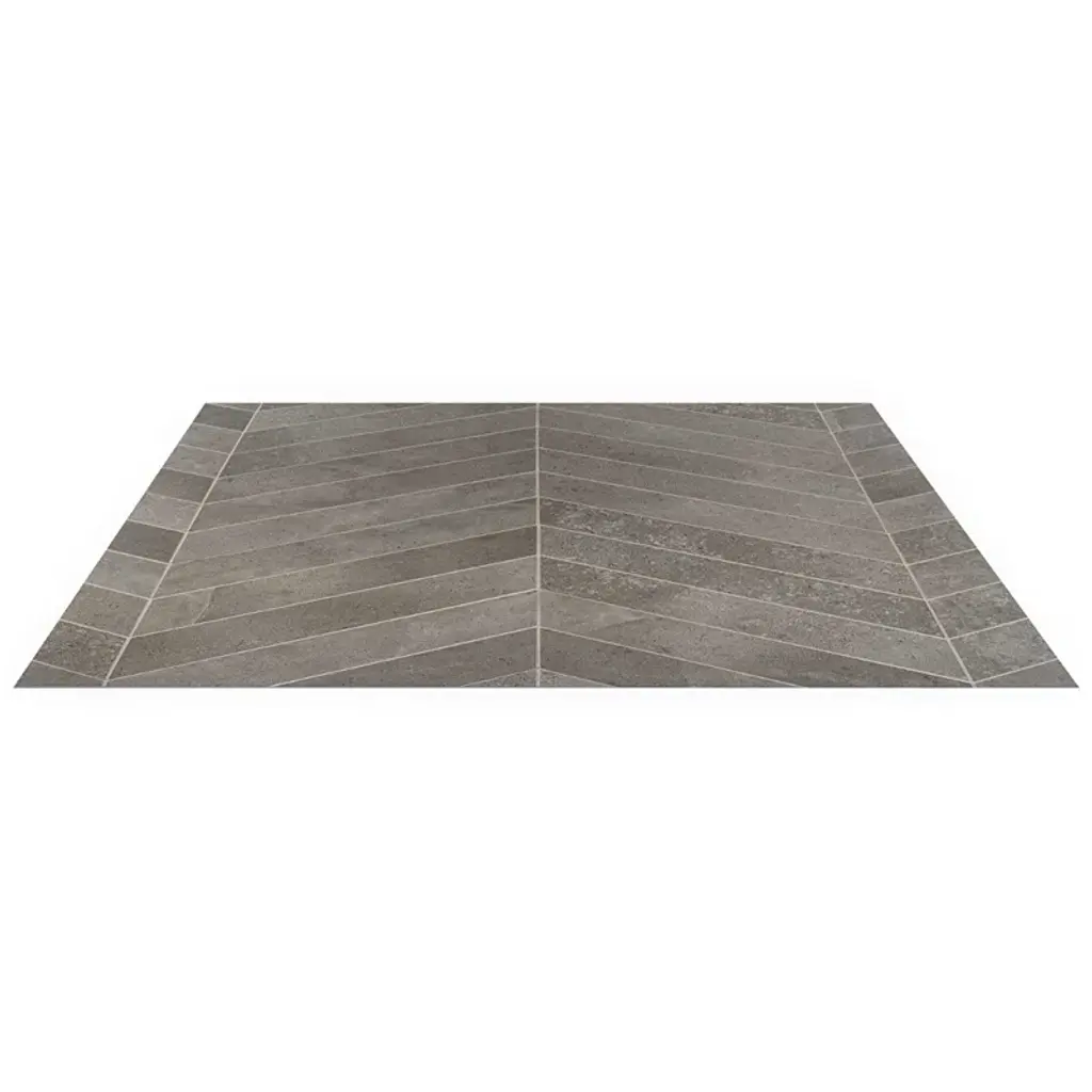 New Rock 4" x 21" chevron tile features a warm color palette with subtle veining, creating an authentic look of natural Lecce limestone, from Salento, Italy. The large, chevron format allows for elegant installation in large and small spaces, while a matte finish adds a soft, modern layer over this timeless stone-look tile. Made in Italy, the New Rock collection is an authentic, porcelain homage to Italian Limestone. The large and oversized format tiles and large mosaic sheets of the New Rock collection provide time-efficient and cost-effective surface coverage. This will enable you to keep your project budget while achieving a first-in-its-class limestone look. Whether indoor or outdoor, floor or wall, enjoy fewer grout lines and a more seamless appearance.