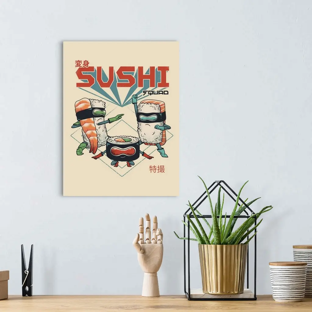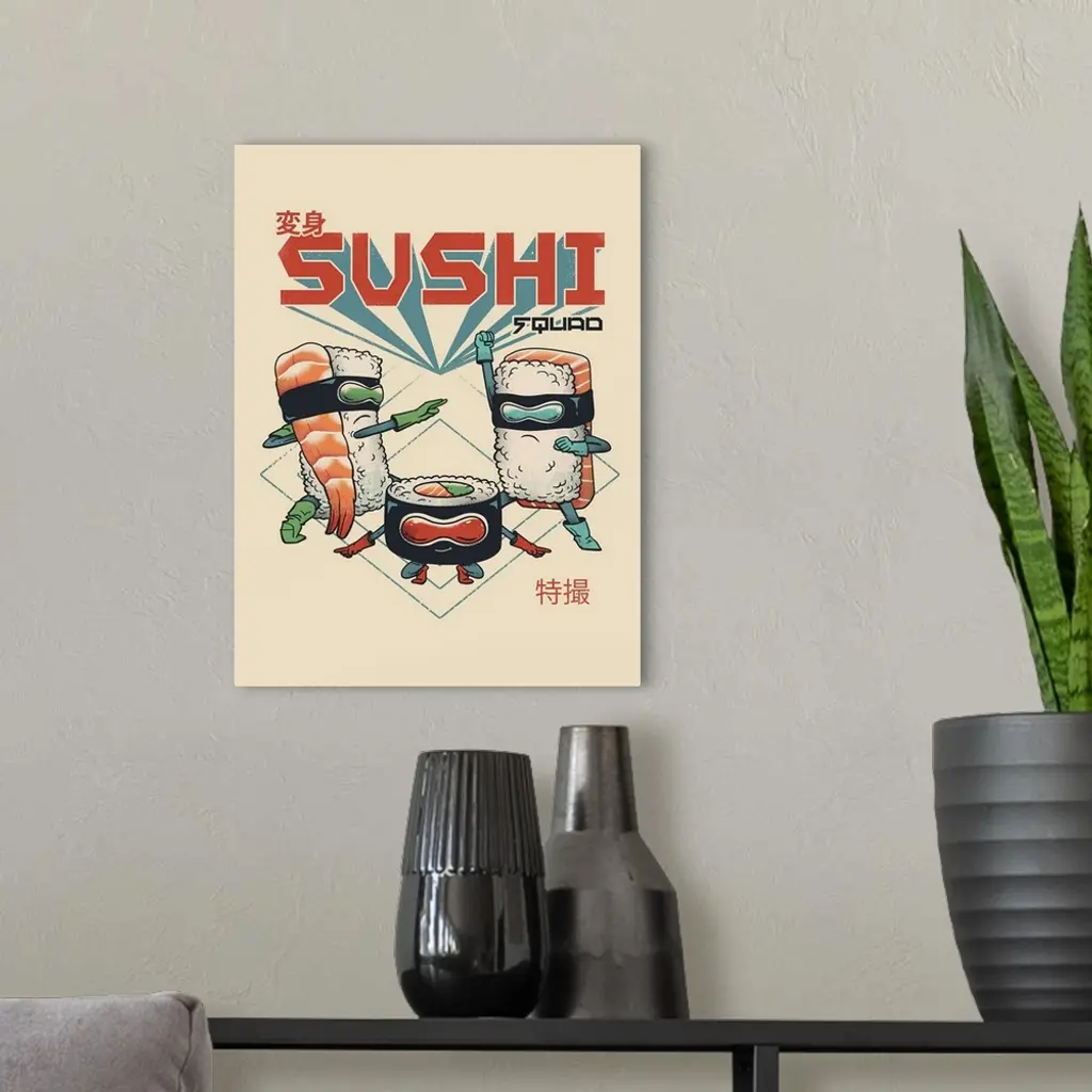 New Sushi Squad wall art for home and office decor. Discover canvas art prints, photos, mural, big canvas art and framed wall art in GreatBigCanvas.com's varied collections.