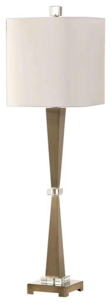 This Sleek Design Features Tapered Steel Columns, Finished In Plated, Lightly Antiqued Brushed Nickel, Accented With Thick Crystal Details. The Square Hardback Shade Is A White Linen Fabric With Rolled Edges. Voltage : 110
