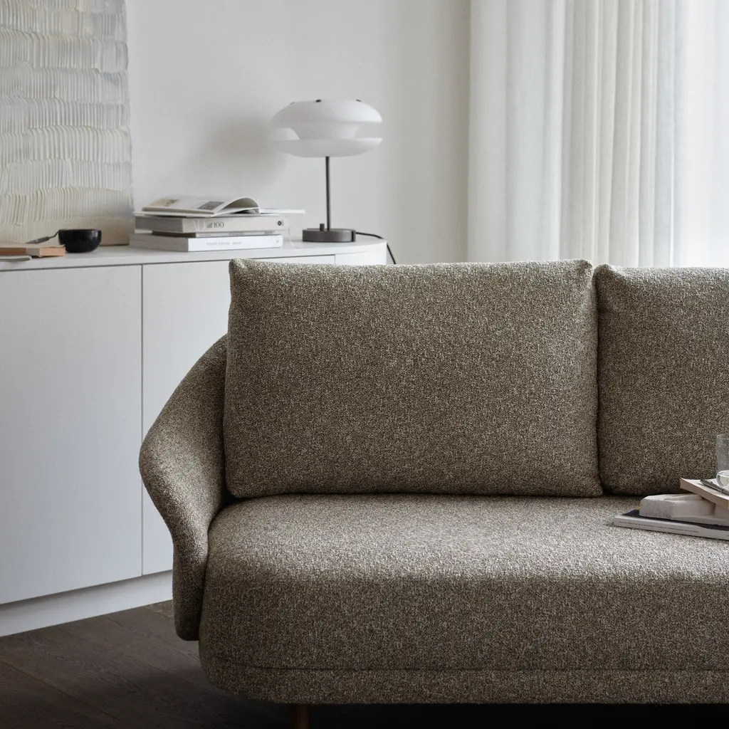 The New Wave Sofa by Norr11 is inspired by Danish sofas from the 1950s, featuring a minimal design that consists of three key elements: base, back, and cushion. Each part is meticulously designed for its function. The sofa's generous proportions easily accommodate three people. The legs are available in 4 oak finishes.