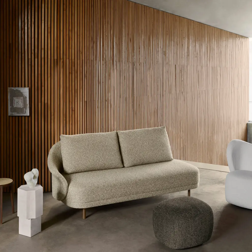 The New Wave Sofa by Norr11 is inspired by Danish sofas from the 1950s, featuring a minimal design that consists of three key elements: base, back, and cushion. Each part is meticulously designed for its function. The sofa's generous proportions easily accommodate three people. The legs are available in 4 oak finishes.