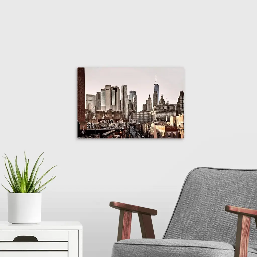New York City, Lower Manhattan, Lower East Side skyline viewed from Manhattan Bridge.