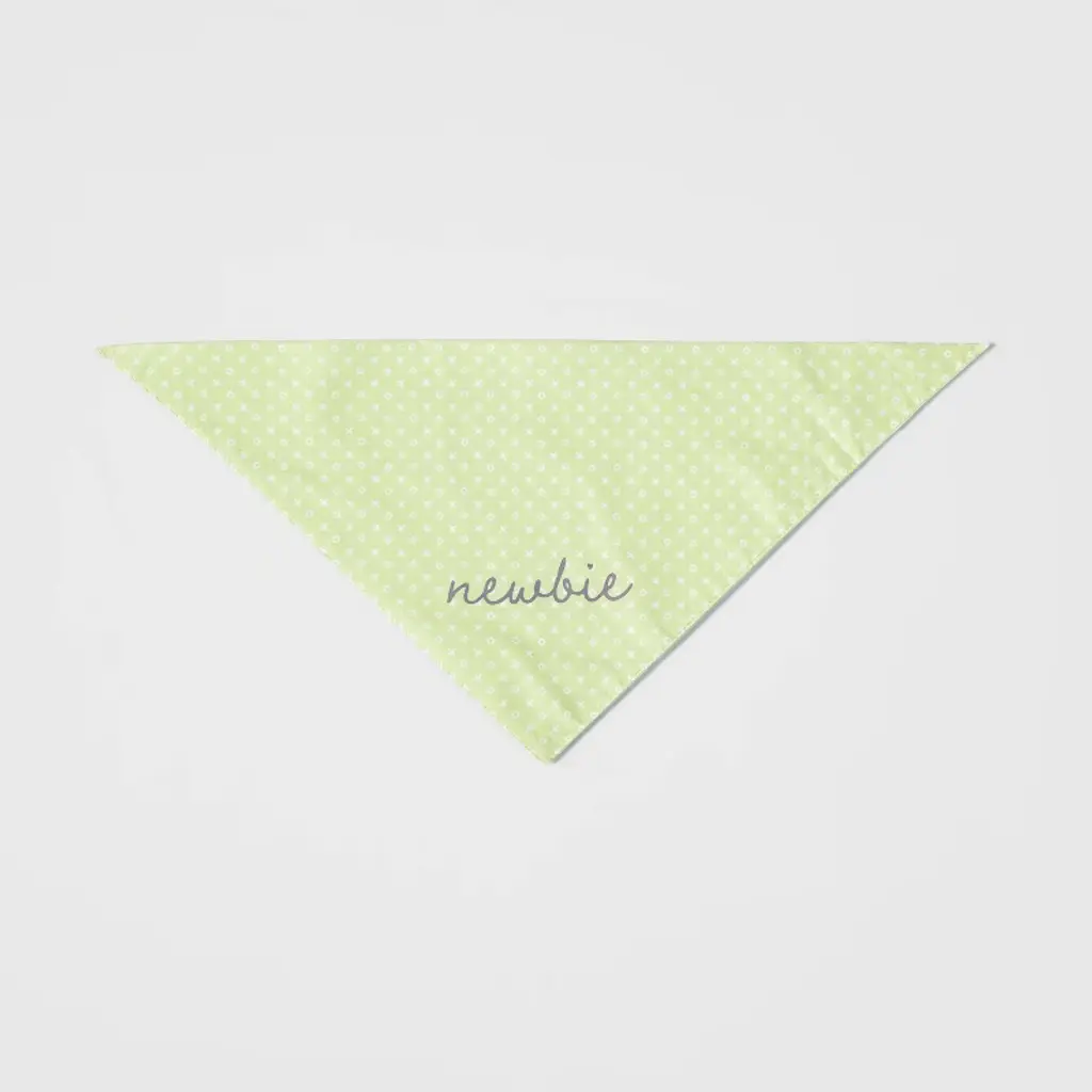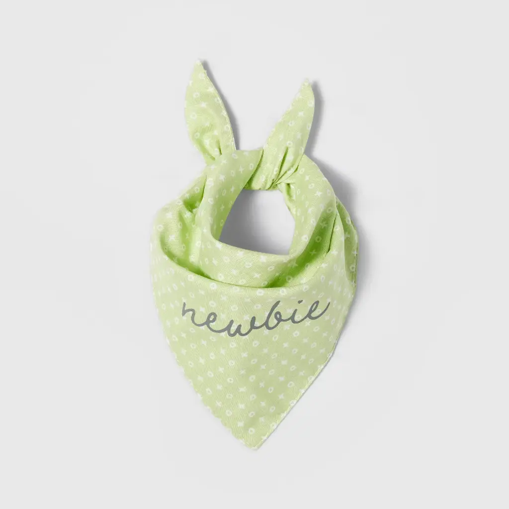 Dress up your furry friend for fun outings with this Cat and Dog Bandana from Boots & Barkley™. This triangular pet bandana features an allover + and 0 print along with gray 'newbie' text on a soft green backdrop for a whimsical look. Made of soft cotton material to keep them comfy, this bandana is easy to secure around their neck by tying at the back. Plus, it can be machine washed for easy care.Boots & Barkley™: Because pets are just the best.100% satisfaction guaranteed or your money back.