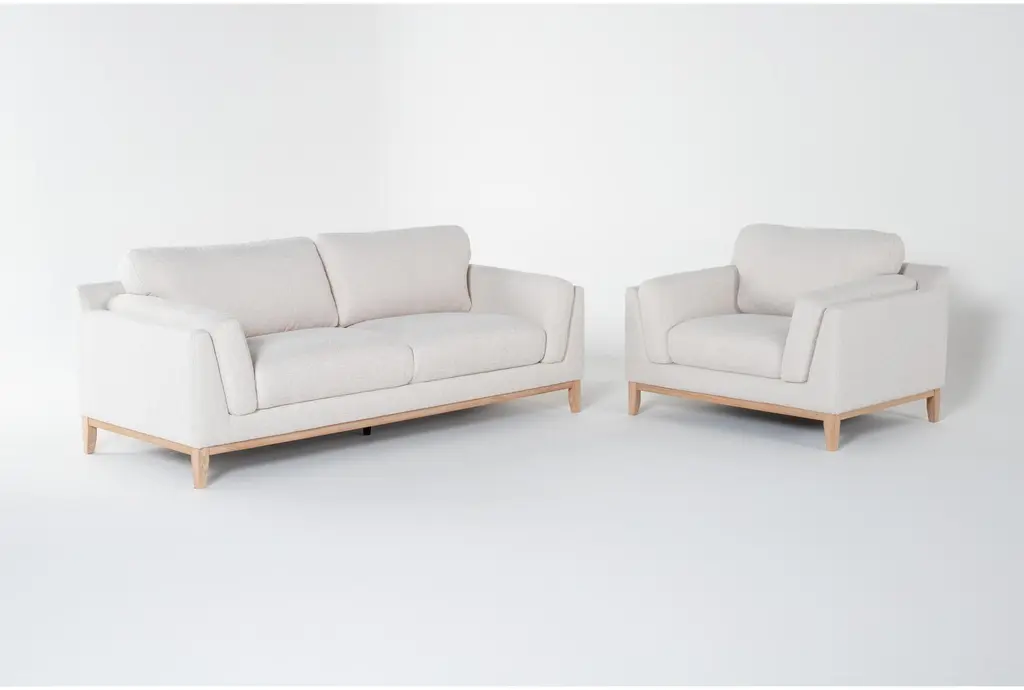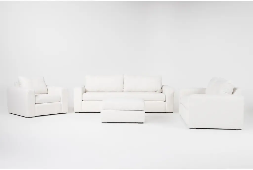 Newport White Fabric 4 Piece 84" Sofa Loveseat Oversized Armchair & Ottoman Set