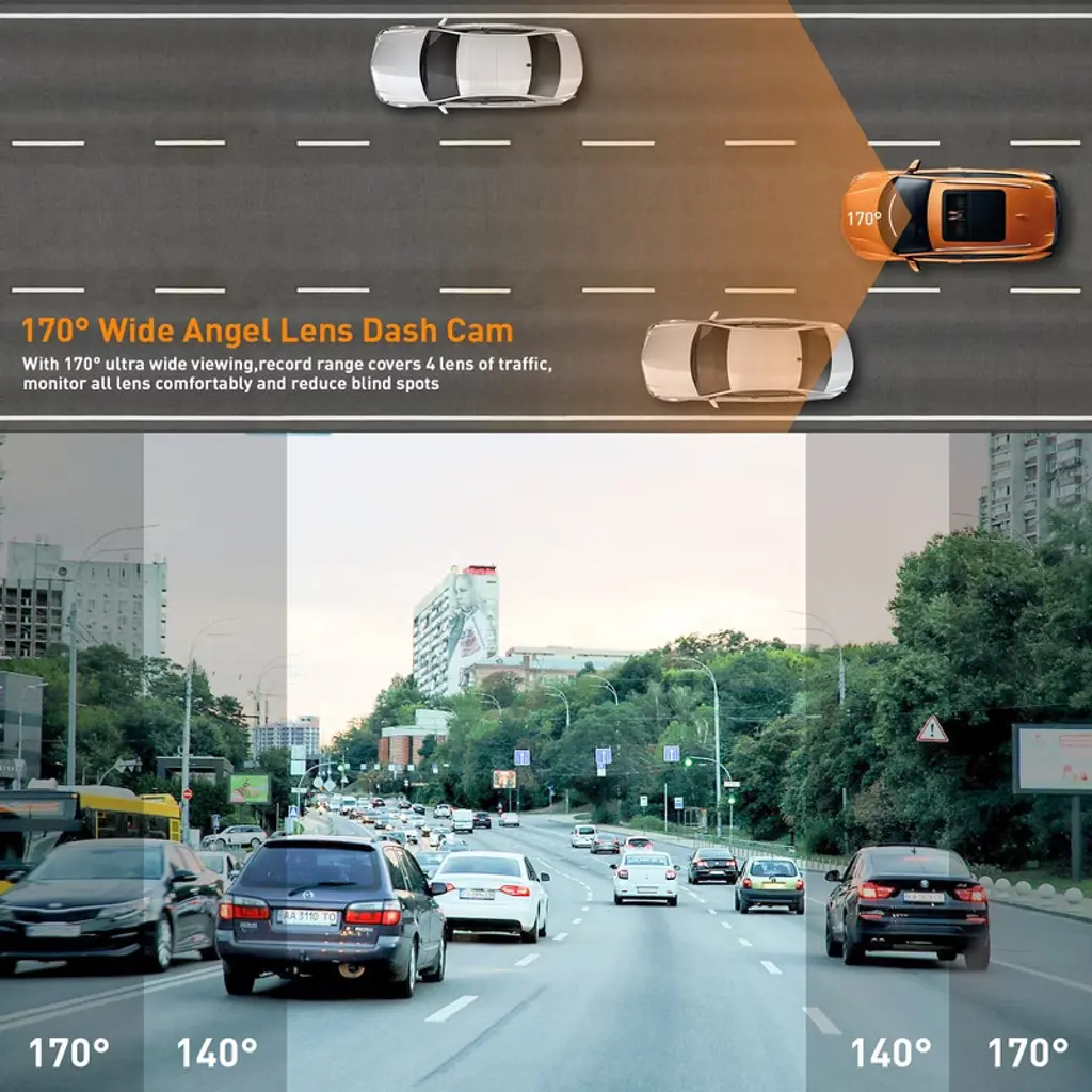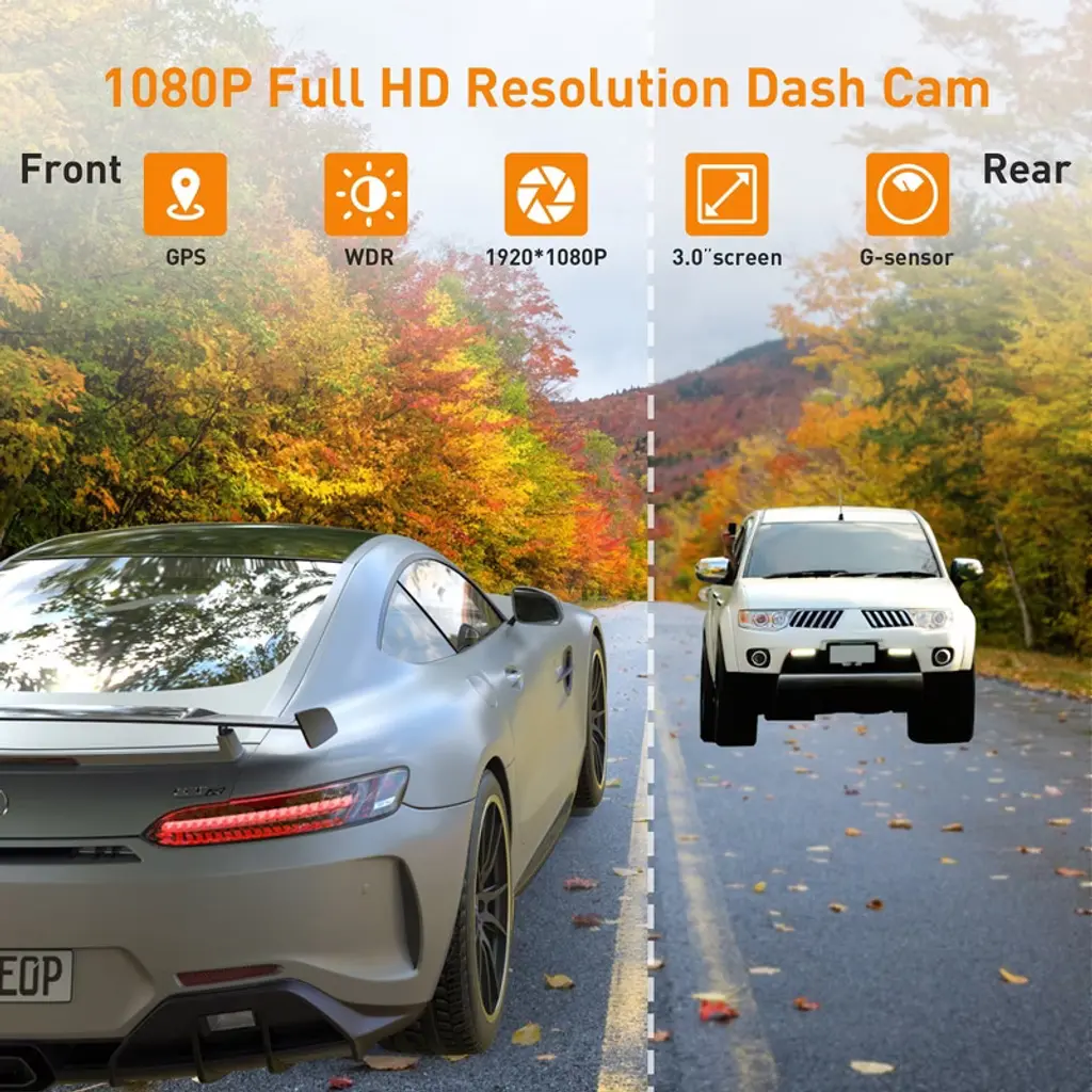 【1080P FRONT AND REAR DASH CAMERA】The NEXPOW DUAL dash cam offers dual-channel recording capabilities, capturing footage simultaneously from both the front and rear cameras. The front camera records at 1080P, while the rear camera captures 720P, ensuring clear recordings of the road ahead and behind you. With a 170° ultra-wide angle for the front camera and a 140° angle for the rear camera, you'll capture more of the road with this dash cam. 【SUPER NIGHT VISION】This dash cam delivers exceptional image quality with vivid colors and sharp details, even in challenging lighting conditions. Additionally, the front camera's F1.5 aperture and the rear camera's F1.8 aperture allow more light to enter the lens, resulting in brighter and clearer recordings, particularly in low-light environments. 【COMPACT AND SUPER EASY TO INSTALL 】The dash cam front and rear Simple installation and set up with detailed instructions included, no need to worry even for a first time user.With slim and compact design, the dash cam will never block your view. 【 Loop Recording】When the storage limit is reached on the memory card, new recordings will automatically overwrite oldest recordings. The dash camera for cars can automatically detect a sudden shake/collision and lock the footage to prevent the video from being overwrote even in loop recording. 【24H PARKING MONITOR & G-SENSOR 】Adjustable G-sensor helps the car camera to adapt various road conditions. 24 hours parking function makes both front and inside cameras automatically turn on and record when shake/collision is detected. Time Lapse recording mode continuously records at 1 sec/1 fps(Hardwire kit is needed), saving the storage space. (NOTE: Hardware Kit NOT include).