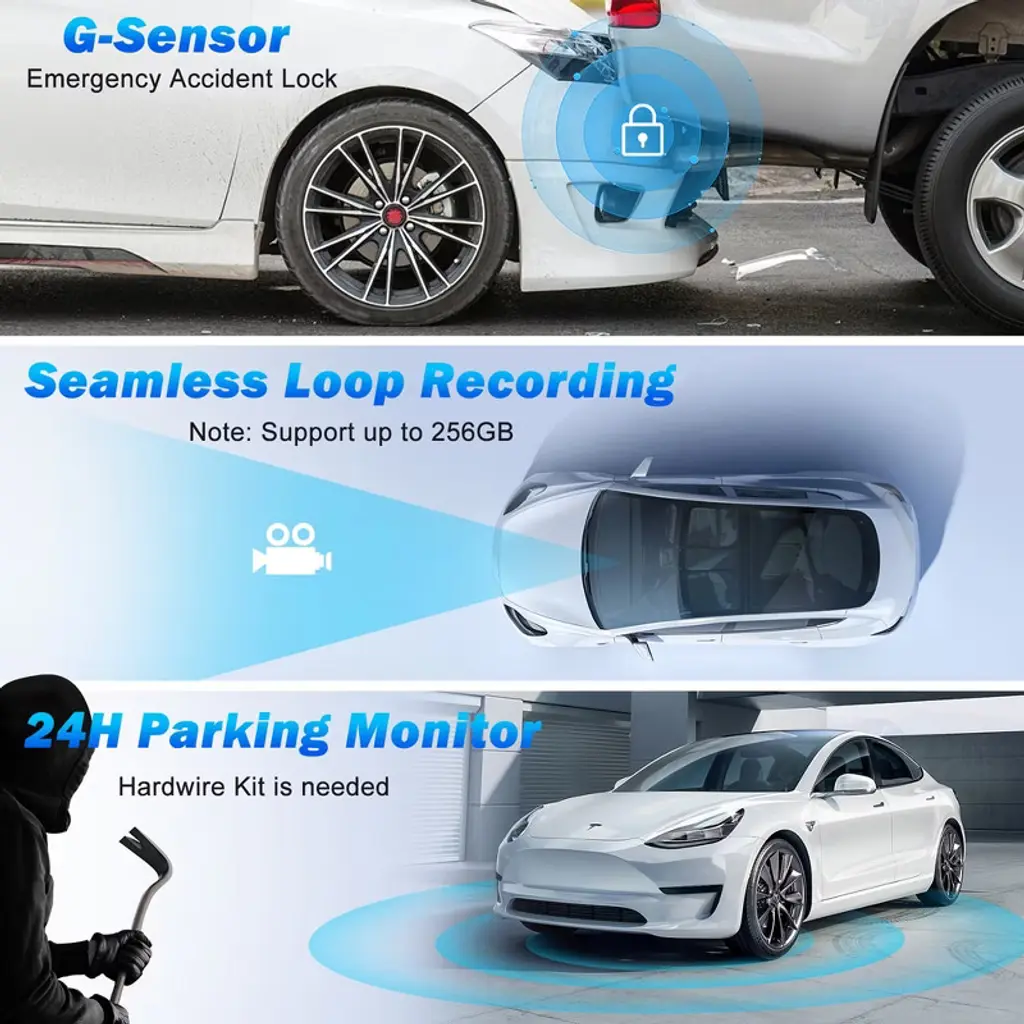 4K +1080P DUAL RECORDING WITH 32GB CARD - NEXPOW A17 front camera supports records video up to Ultra HD 4K (3840*2160 @30fps) +FHD 1080P resolutions, delivering cinematic smooth 4K image quality that makes reading license plates and road signs, day or night. Perfect for Uber, Lyft, Taxi and any rideshare drivers as well as people who wants to record the situation all around the car.INFRARED NIGHT VISION CAR CAMERA - With high-performance sensor, the dash camera adopts front F1.8 aperture and 170° wide angle 6-glass lens, and it's equipped with HDR/WDR technology to increase exposure automatically in dark situations for capture clear videos footage. 4 IR LED lights facing the car cabin, which can accurately capture the driver and passengers even when the cabin is completely dark.DASH CAM WITH WiFi & GPS - Simply connect the dash cam to your smartphone app via WiFi, then use the "LuckyCam" app to view, playback, and manage the dash camera. You can share your travel scenery and special moments with friends and family. The dash cam also has built-in GPS, allowing you to track your driving route, real-time speed, and location on Google Maps via WiFi using the HIT GPS Player, providing additional evidence in case of an accident.4K+1080P 2-CHANNEL RECORDING - The versatile IR camera can be installed as a rear camera or a cabin camera. You can configure it for front and rear 4K+1080P, or front and inside 4K+1080P dual channel mode as needed. The cabin camera, equipped with an F1.8 aperture and 4 IR LEDs, ensures clear recording of passenger activity inside the car even in complete darkness. (NOTE: THE IR CAMERA CAN BE USED AS REAR CAMERA OR INTERIOR CAMERA, THE PACKAGE DON'T INCLUDE A SEPARATE REAR CAMERA.)POWERFUL & RELIABLE DASH CAM - The variable sensitivity G-sensor automatically detects sudden shakes or collisions and locks the footage in the event folder upon impact. Seamless loop recording automatically overwrites the oldest file when the card is full, ensuring that locked videos are not overwritten. The car camera also features a 24-hour parking monitor for continuous recording. It supports micro SD cards up to 256GB.