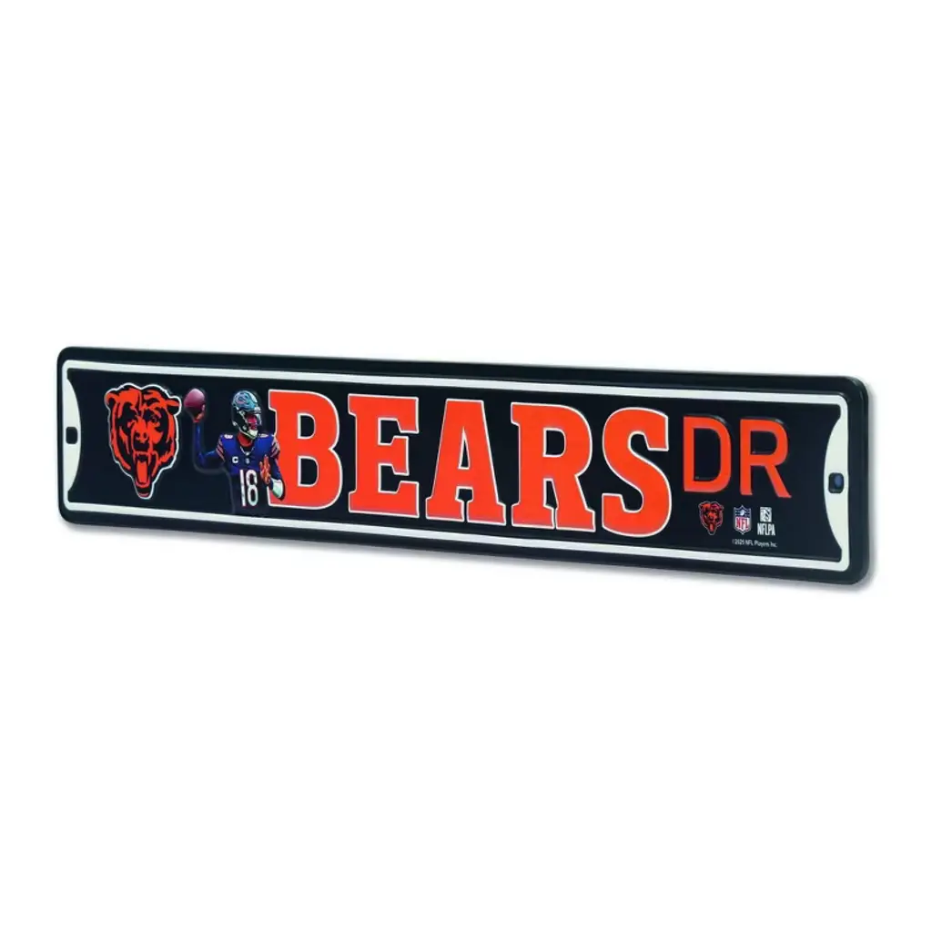 Bring the spirit of the Windy City to your walls with this bold Chicago Bears metal sign. Featuring the team’s signature navy and orange colors, the iconic Bears logo, and a fierce player graphic, this piece captures the intensity of Chicago football. The “Bears Dr.” text gives it a street-smart edge that any die-hard fan will appreciate. It’s the perfect addition to your man cave, game room, or fan zone.