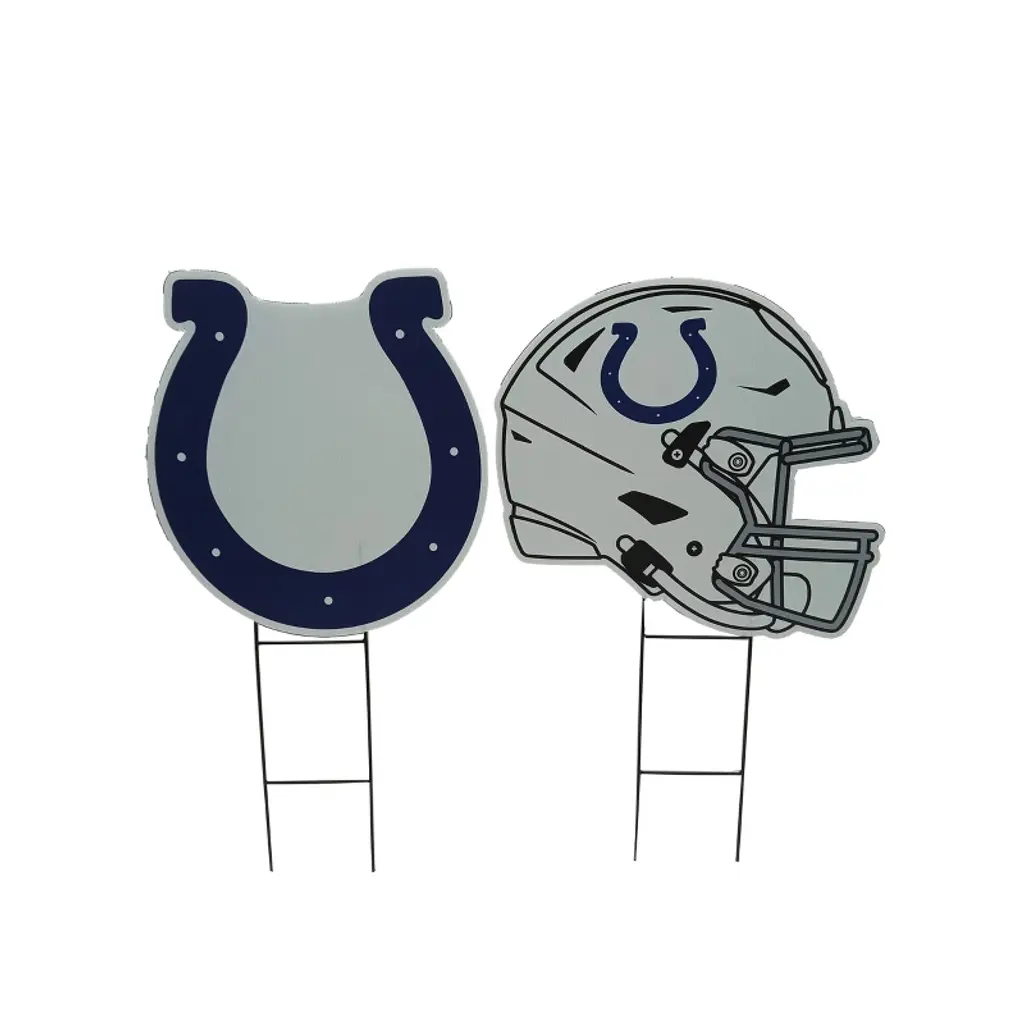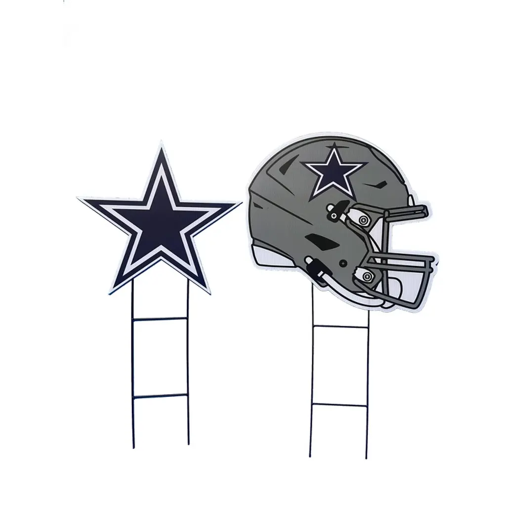 Show off your team spirit with this Pegasus Sports Logo and Helmet 2 Pack Yard Sign Set! Featuring a bold team helmet design and a separate team logo sign, this set is perfect for decorating your yard, tailgate space, or any outdoor area. Made from durable, weather-resistant materials and easy to install with included stakes, these signs let you celebrate your favorite team in style—rain or shine!