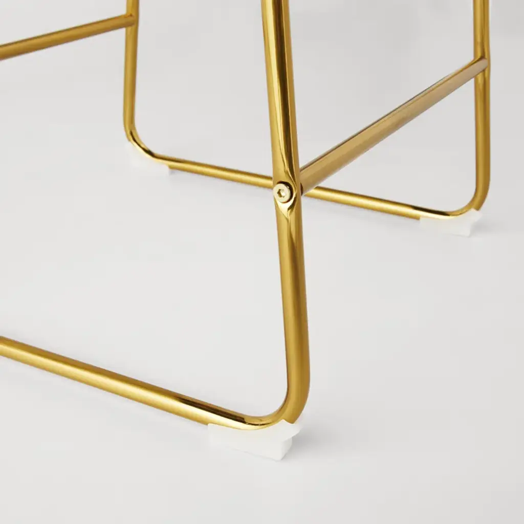 This 2-piece set of dining stools offers a seat for morning coffees + happy hours. Wrapped in decoratively stitched vegan leather, each stool rests on an open metal sled base with a built-in footrest to keep you steady. This duo's seats are also padded with foam for just-right support, and protective glides prevent floor scuffs.