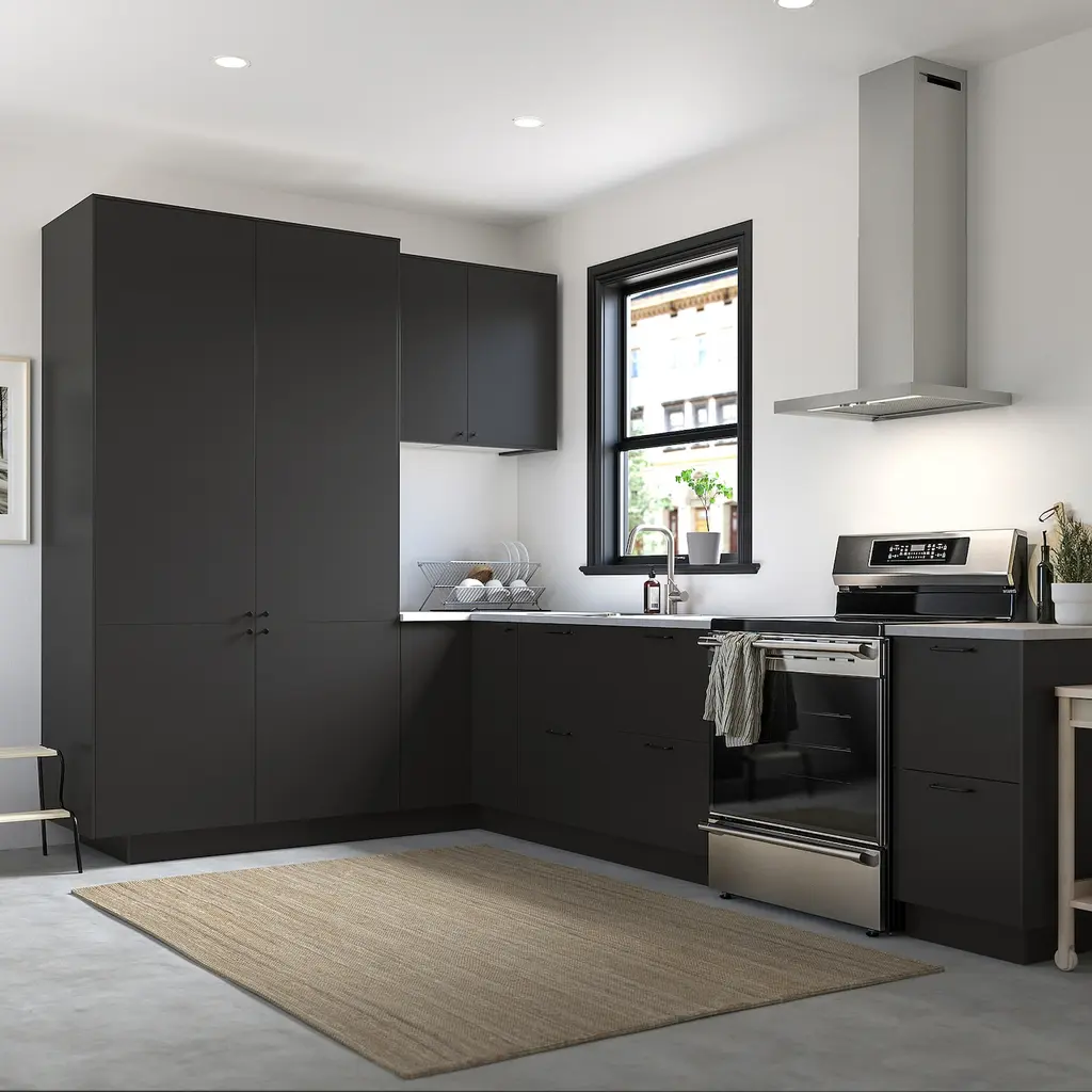 NICKEBO Drawer front - matte anthracite 24x15 ". The clean and simple design makes it easy to place and personalize with knobs, handles, worktop and other details to strengthen your style. Made of recycled wood dressed in a foil made mainly of recycled plastic. Fits SEKTION kitchen series.