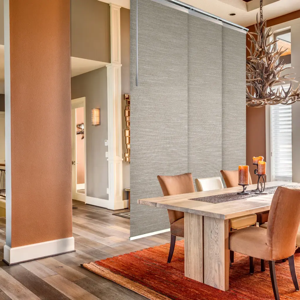 Central Design Products is pleased to introduce a new innovative panel track that offers easy 2-way installation, adding an alluring style and refined touch to your home decor. The single rail design of the track is sleek, compact, and reduces the overall footprint and weight of the installation, eliminating bulky, intrusive window treatments. Adjusting the panel height is a breeze � simply trim the panel, re-attach the liner, and install the panel weight. Detailed instructions are included.The panel track also features a patented slider design, made with aluminum and fitted with bearings that allow for durable and smooth operation. The sliders are stacked closer together than conventional panel tracks, reducing light bleed coming from the gaps between panels. This track has endless uses from dividing rooms, garages, offices, and closets to decorating windows and patios. Available in larger sizes including 8, 10, and 12 panels. Extends from 36-66� wide. Each panel measures 23.5" wide and 116" tall, with a total installation height of 118.5" (includes the 2.5" rail track). The track can be wall or ceiling mounted. The panels can stack on the left or the right. The clearance from the wall is extendable from 1.25� to 3.25� and projection from the wall is extendable from 3� to 4.25�. Nico panel is made from 70% Polyester 30% Acrylic, with a blackout shade.
