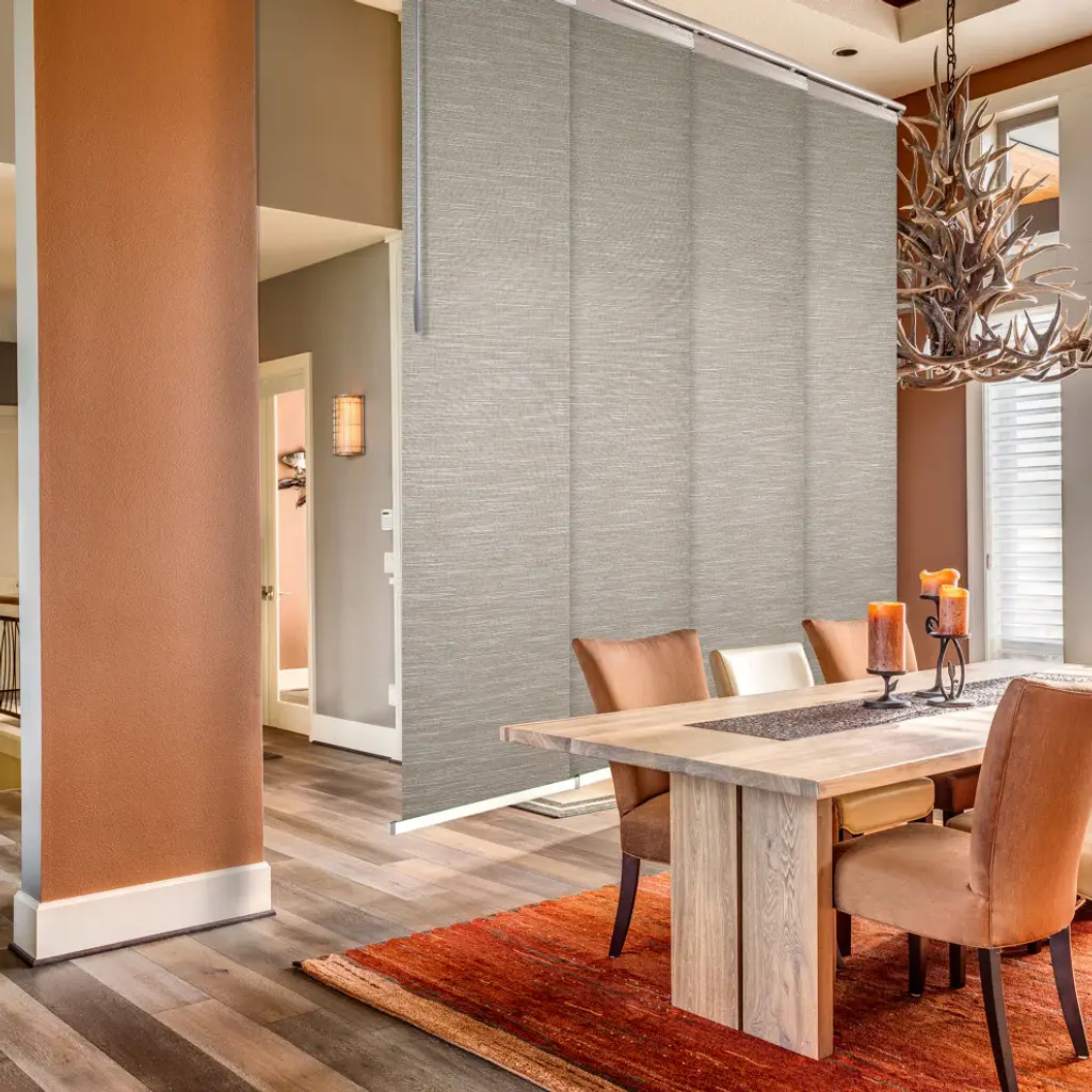 Central Design Products is pleased to introduce a new innovative panel track that offers easy 2-way installation, adding an alluring style and refined touch to your home decor. The single rail design of the track is sleek, compact, and reduces the overall footprint and weight of the installation, eliminating bulky, intrusive window treatments. Adjusting the panel height is a breeze � simply trim the panel, re-attach the liner, and install the panel weight. Detailed instructions are included.The panel track also features a patented slider design, made with aluminum and fitted with bearings that allow for durable and smooth operation. The sliders are stacked closer together than conventional panel tracks, reducing light bleed coming from the gaps between panels. This track has endless uses from dividing rooms, garages, offices, and closets to decorating windows and patios. Available in larger sizes including 8, 10, and 12 panels. Extends from 48-88� wide. Each panel measures 23.5" wide and 116" tall, with a total installation height of 118.5" (includes the 2.5" rail track). The track can be wall or ceiling mounted. The panels can stack on the left or the right. The clearance from the wall is extendable from 1.25� to 3.25� and projection from the wall is extendable from 3� to 4.25�. Nico panel is made from 70% Polyester 30% Acrylic, with a blackout shade.