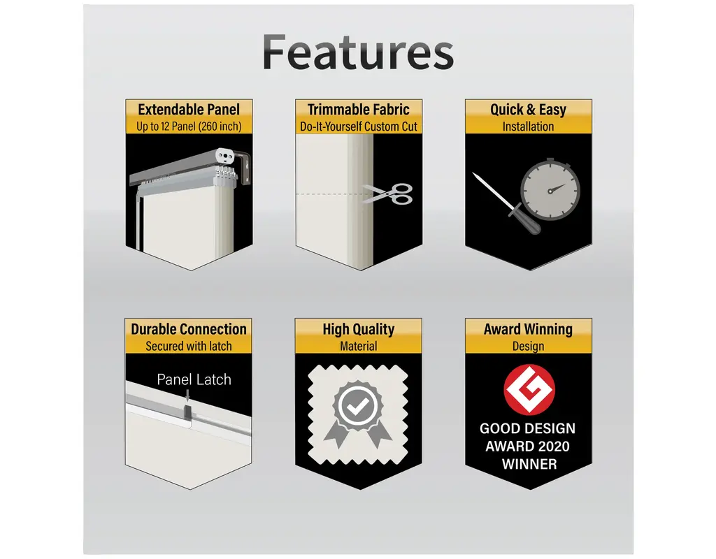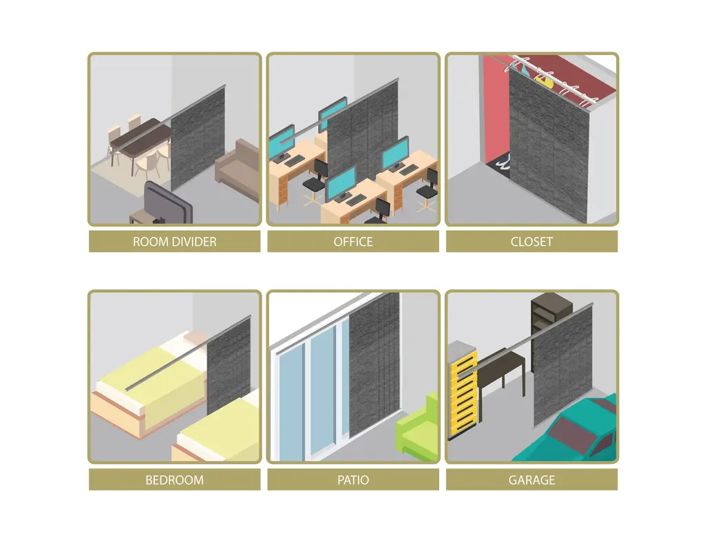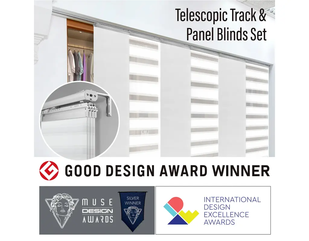 Central Design Products is pleased to introduce a new innovative panel track that offers easy 2-way installation, adding an alluring style and refined touch to your home decor. The single rail design of the track is sleek, compact, and reduces the overall footprint and weight of the installation, eliminating bulky, intrusive window treatments. Adjusting the panel height is a breeze � simply trim the panel, re-attach the liner, and install the panel weight. Detailed instructions are included.The panel track also features a patented slider design, made with aluminum and fitted with bearings that allow for durable and smooth operation. The sliders are stacked closer together than conventional panel tracks, reducing light bleed coming from the gaps between panels. This track has endless uses from dividing rooms, garages, offices, and closets to decorating windows and patios. Available in larger sizes including 8, 10, and 12 panels.Extends from 98-130� wide.Each panel measures 23.5" wide and 91.5" tall, with a total installation height of 94" (includes the 2.5" rail track).The track can be wall or ceiling mounted.The panels can stack on the left or the right.The clearance from the wall is extendable from 1.25� to 3.25� and projection from the wall is extendable from 3� to 4.25�.Nico panel is made from 70% Polyester 30% Acrylic, with a blackout shade.