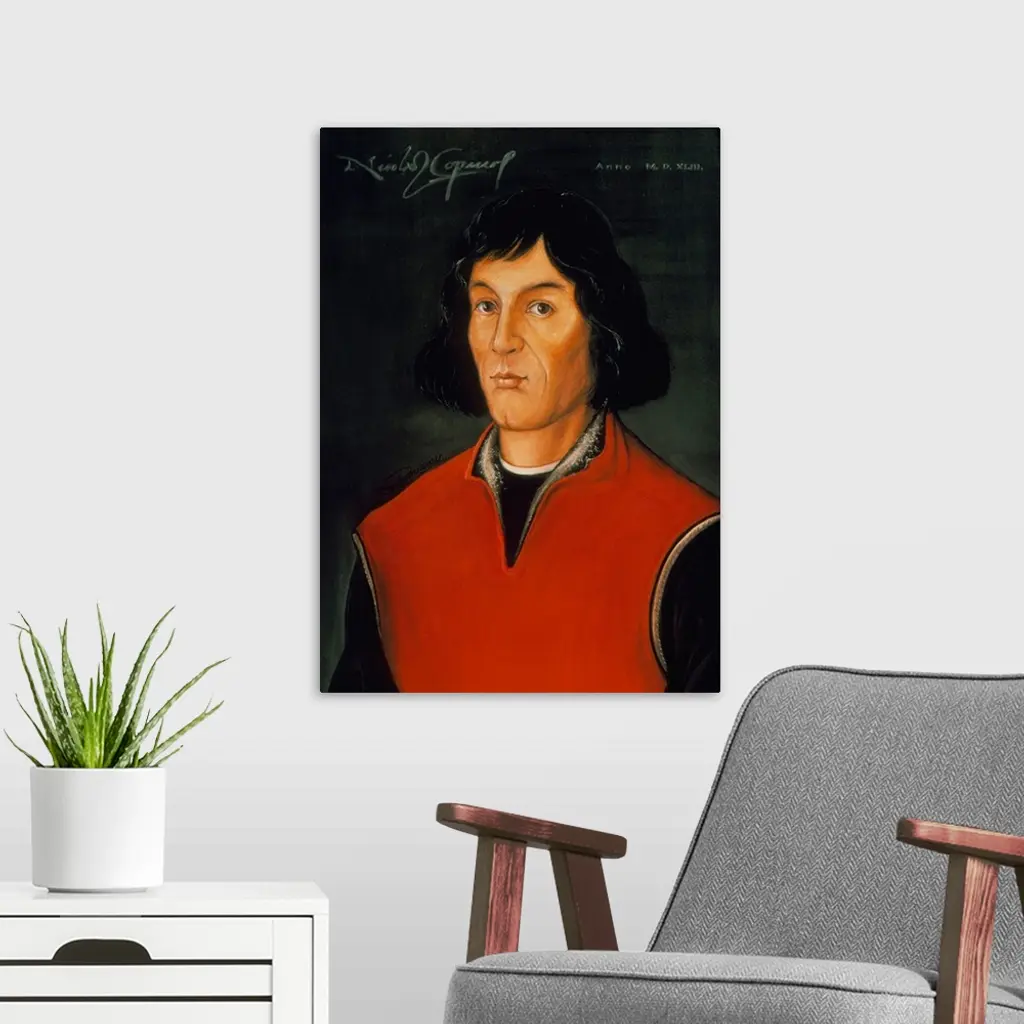 Nicolaus Copernicus. Portrait of Nicolaus Coperni- cus (1473-1543), the Polish astronomer who first claimed that the Universe was centred on the Sun. From 1512 he developed a full mathematical model for this heliocentric theory. This system contrasted with that described by Ptolemy over a thousand years before which held that the Universe was Earth-centred. The Ptolemaic system had become the doctrine of the Roman Catholic church. Copernicus, fearing persecution, delayed publication of his book, The Revolution of the Heavenly Spheres, until 1543. The book was banned by the Roman Catholic church from 1616 until 1835.