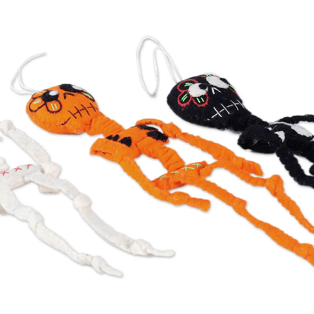 Embrace Halloween classics with this set of 4 clowns and skeletons, combining two of the spookiest symbols of the season! Each of the 4 full-bodied skeletons covers the total skeletal structure, measuring 15.7 inches in length and dressed in the freakiest carnival fashion. With a string on the top of their skulls, these skeletons can be easily hung on porches, trees, windows, or walls, adding an eerie touch to your Halloween décor. Fun Little Toys has made this holiday season a lot more fun with these hanging Halloween decorations, sure to give your guests a frightful delight!