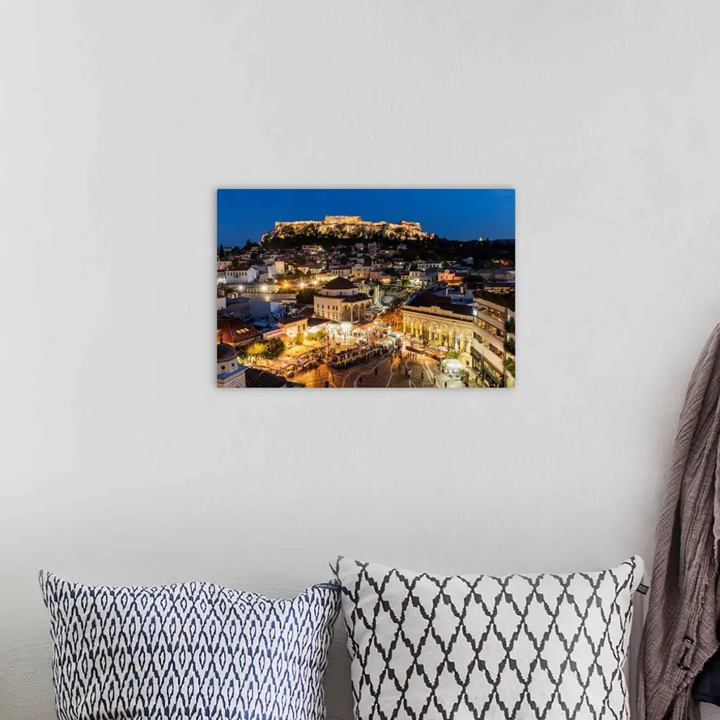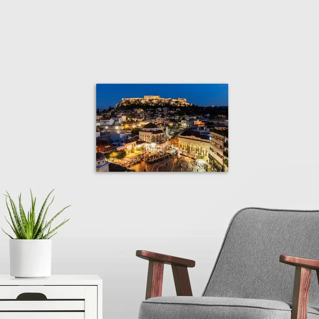Night City Skyline With Monastiraki Square And Acropolis In The Background, Athens