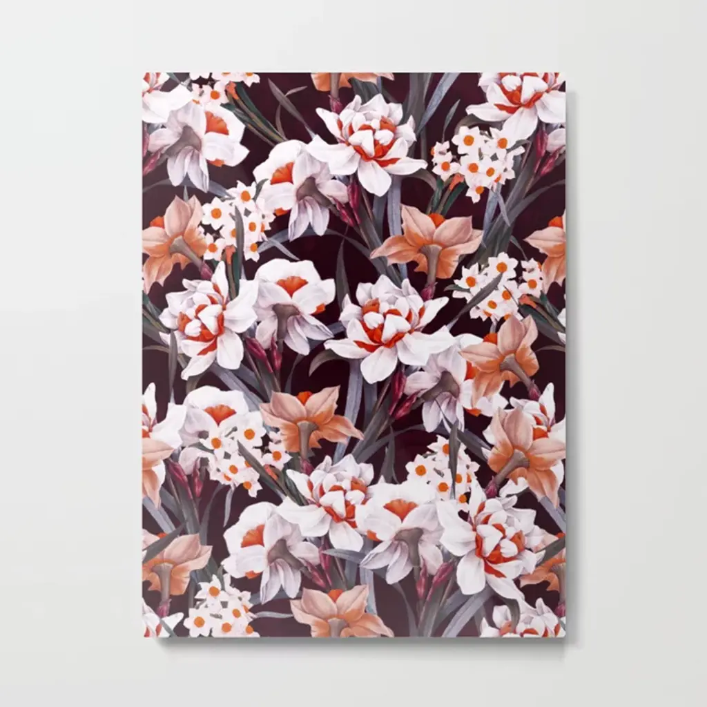 Night Forest, Colorful Dark Eclectic Floral Nature Botanical Jungle Floral Bohemian Illustration Metal Print