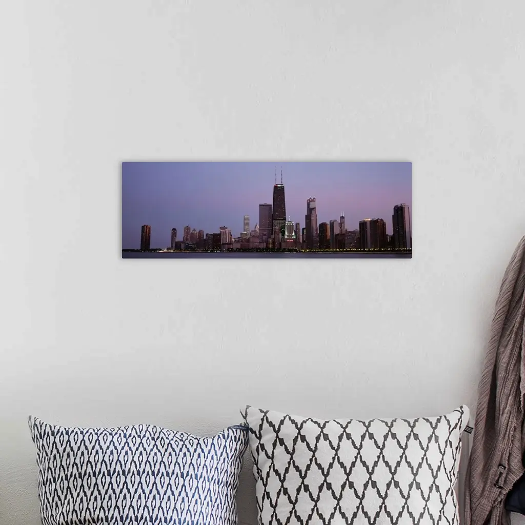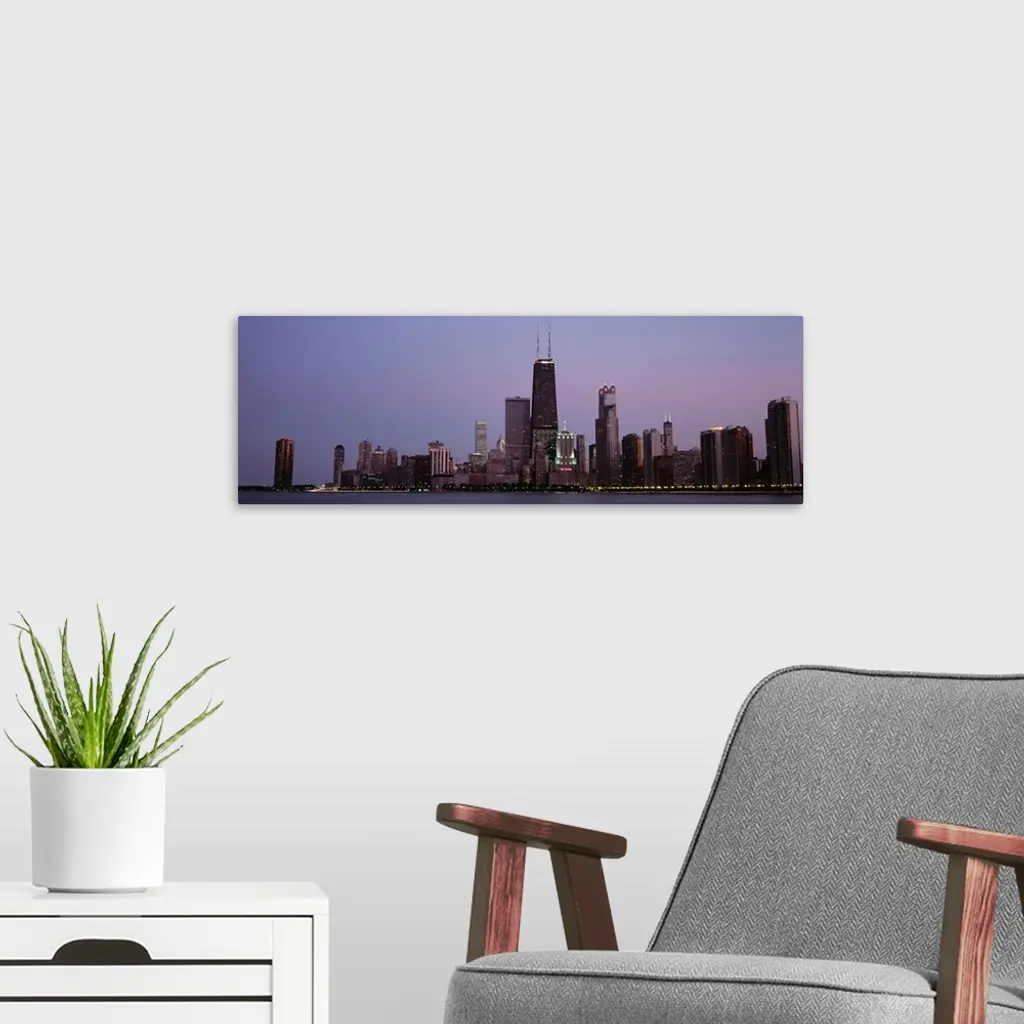 Night skyline Chicago IL wall art for home and office decor. Discover canvas art prints, photos, mural, big canvas art and framed wall art in GreatBigCanvas.com's varied collections.