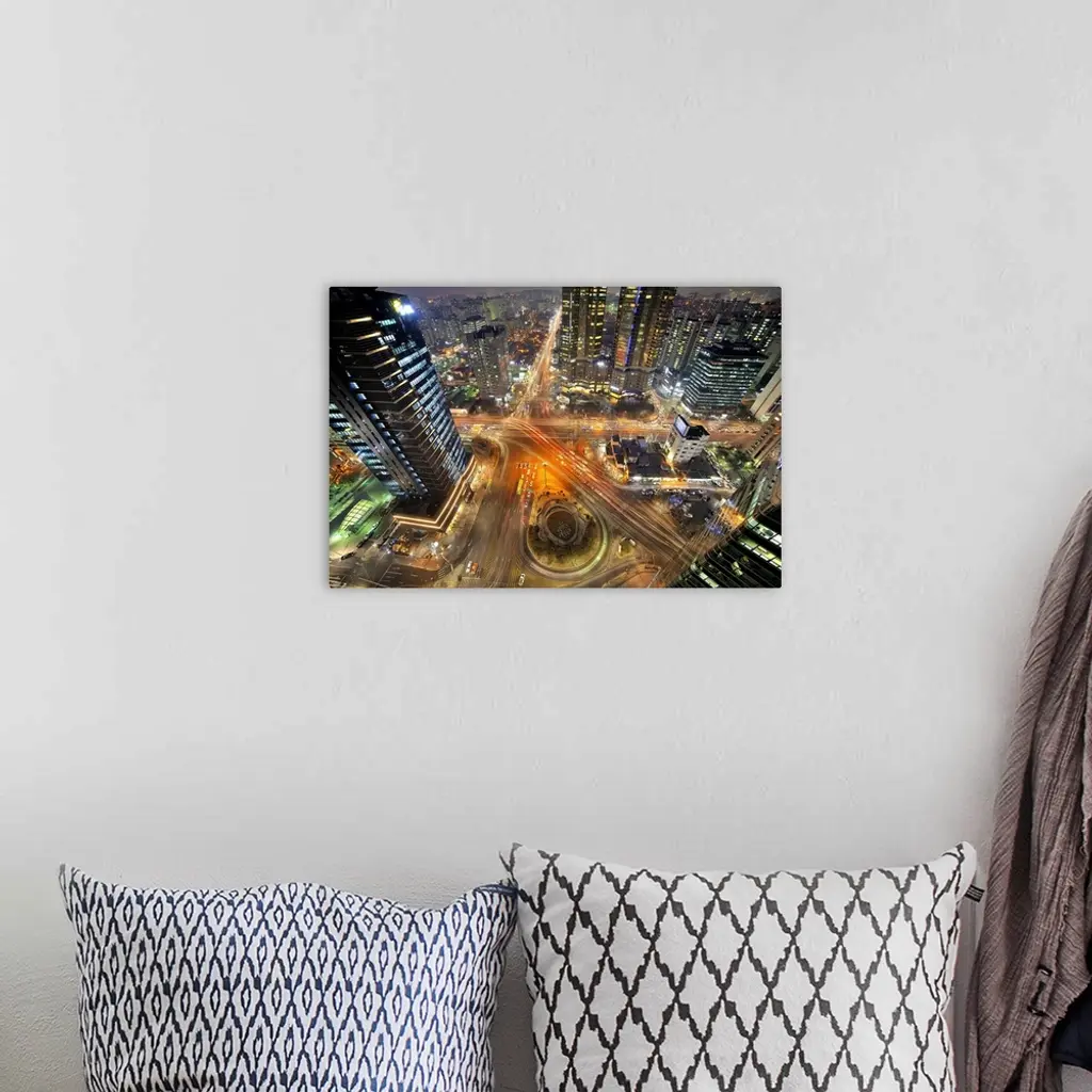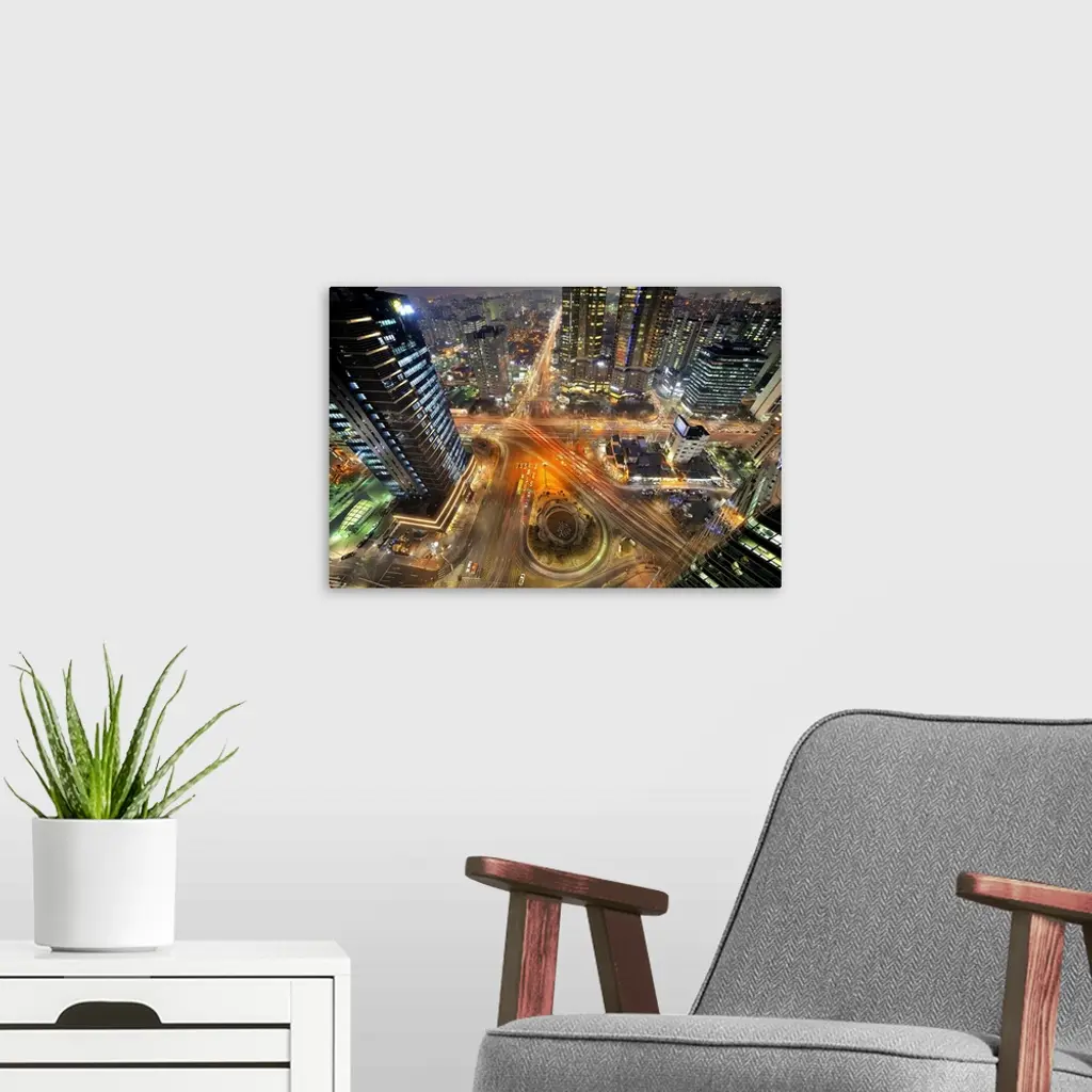 Night view captured at Gongdeok-dong, Mapo-Gu, Seoul, South Korea. wall art for home and office decor. Discover canvas art prints, photos, mural, big canvas art and framed wall art in GreatBigCanvas.com's varied collections.