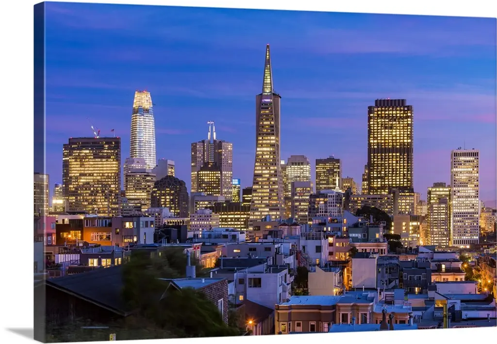 Night view of downtown skyline from North Beach district, San Francisco, California, USA
