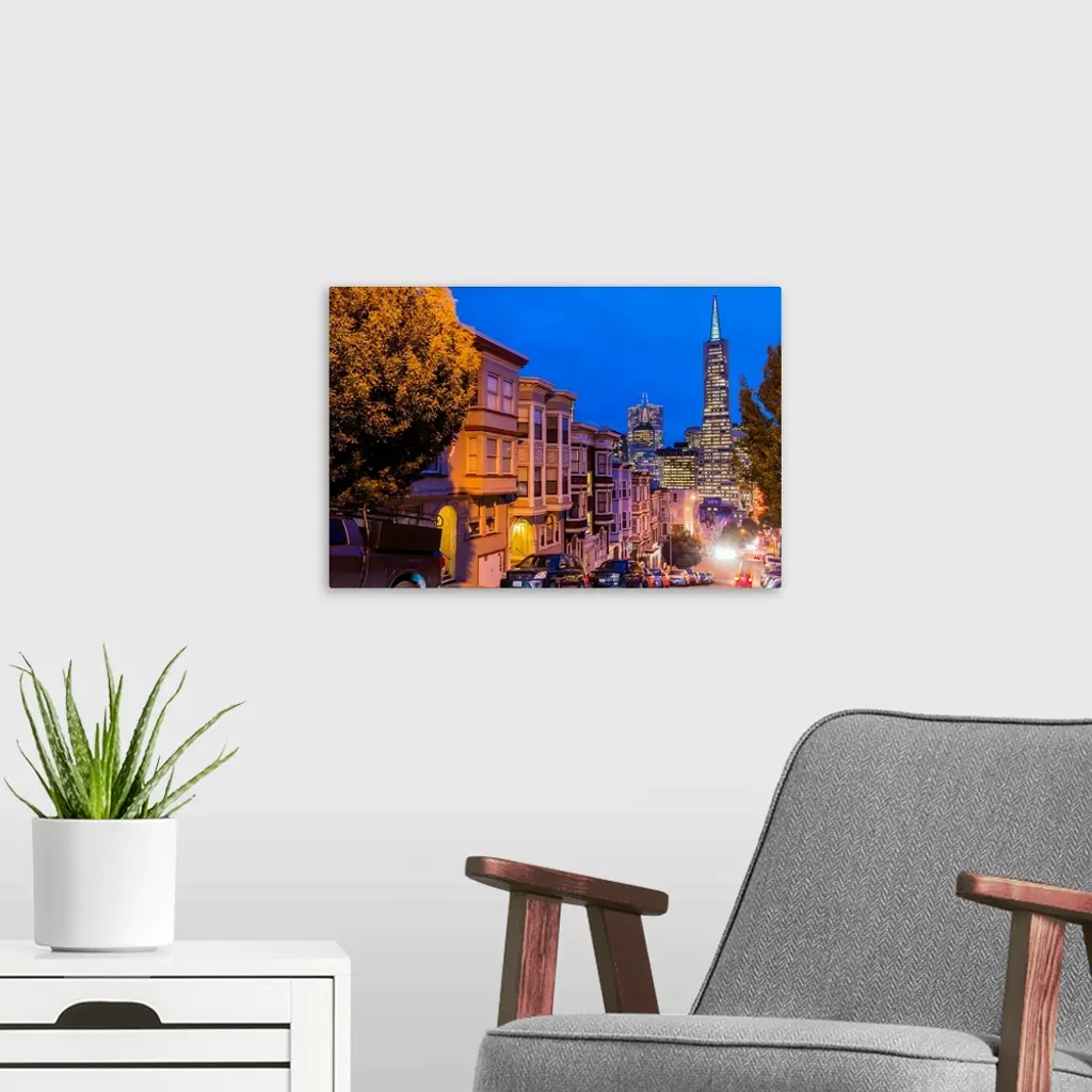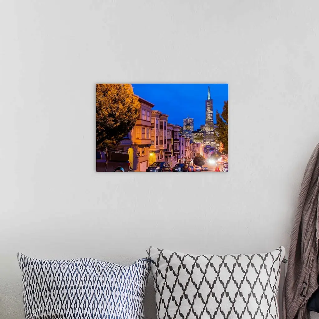 Night View Of Downtown Skyline From North Beach District, San Francisco, California