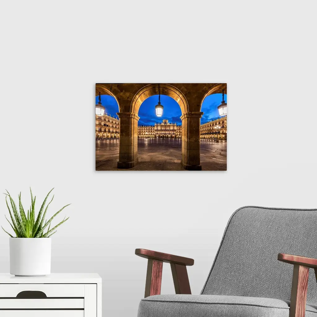 Night View Of Plaza Mayor, Salamanca, Castile And Leon, Spain
