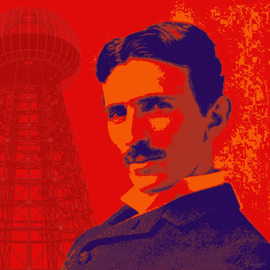 Nikola Tesla Pop Art Warhol style print.Rolled canvas: 2" extra border for stretching.Stretched canvas:1 1/2" thick stretcher with black sides - ready to hang.Nikola Tesla (10 July 1856 - 7 January 1943) was an inventor and a mechanical and electrical engineer. He was one of the most important contributors to the birth of commercial electricity, and is best known for his many revolutionary developments in the field of electromagnetism in the late 19th and early 20th centuries. Tesla's patents and theoretical work formed the basis of modern alternating current (AC) electric power systems, including the polyphase system of electrical distribution and the AC motor, with which he helped usher in the Second Industrial Revolution.Born an ethnic Serb in the village of Smiljan, Croatian Military Frontier in Austrian Empire (today's Croatia), he was a subject of the Austrian Empire by birth and later became an American citizen. After his demonstration of wireless communication through radio in 1894 and after being the victor in the "War of Currents", he was widely respected as one of the greatest electrical engineers who worked in America.Signed and dated.