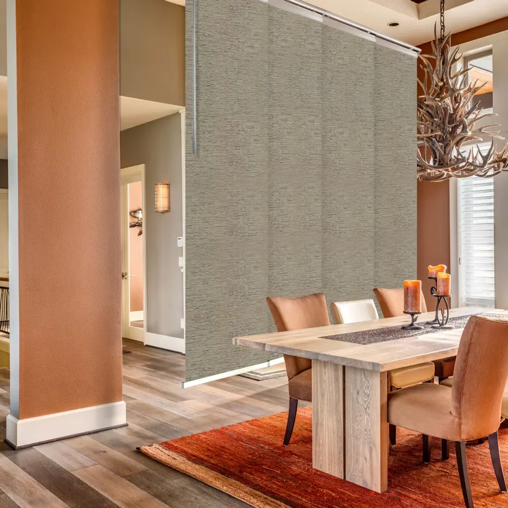 Central Design Products is pleased to introduce a new innovative panel track that offers easy 2-way installation, adding an alluring style and refined touch to your home decor. The single rail design of the track is sleek, compact, and reduces the overall footprint and weight of the installation, eliminating bulky, intrusive window treatments. Adjusting the panel height is a breeze � simply trim the panel, re-attach the liner, and install the panel weight. Detailed instructions are included.The panel track also features a patented slider design, made with aluminum and fitted with bearings that allow for durable and smooth operation. The sliders are stacked closer together than conventional panel tracks, reducing light bleed coming from the gaps between panels. This track has endless uses from dividing rooms, garages, offices, and closets to decorating windows and patios. Available in larger sizes including 8, 10, and 12 panels. Extends from 48-88� wide. Each panel measures 23.5" wide and 116" tall, with a total installation height of 118.5" (includes the 2.5" rail track). The track can be wall or ceiling mounted. The panels can stack on the left or the right. The clearance from the wall is extendable from 1.25� to 3.25� and projection from the wall is extendable from 3� to 4.25�. Nilo panel is made from 70% Polyester 30% Acrylic, with a blackout shade.