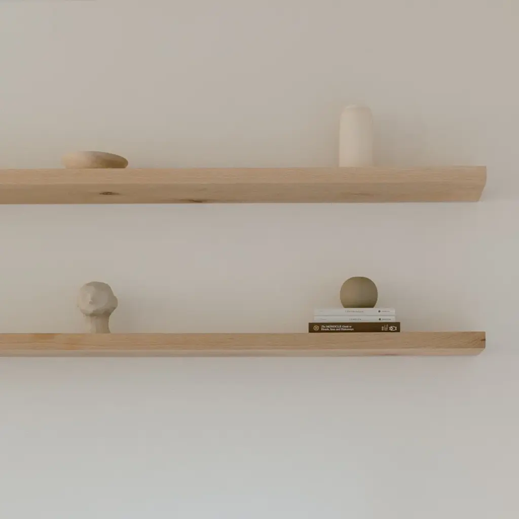 Our white oak floating shelves are perfect for our customers that want natural solid hardwood shelf. High-quality floating shelves made in USA. Those shelves are made of solid white oak. Each shelf can hold up to 35 pounds per stud. Depending on the depth of the shelf, we might glue two boards together to get to your desired depth. Our Shelves are made with love and passion. With a smooth and clean look, these shelves are as beautiful as they are useful, robust, and elegant. They are made to fulfill your design needs, to a modern style, they add a sense of nature and harmony, to a retro-rustic style, they add a touch of wholeness. The final product might appear a bit lighter or darker because of each piece of wood's uniqueness.