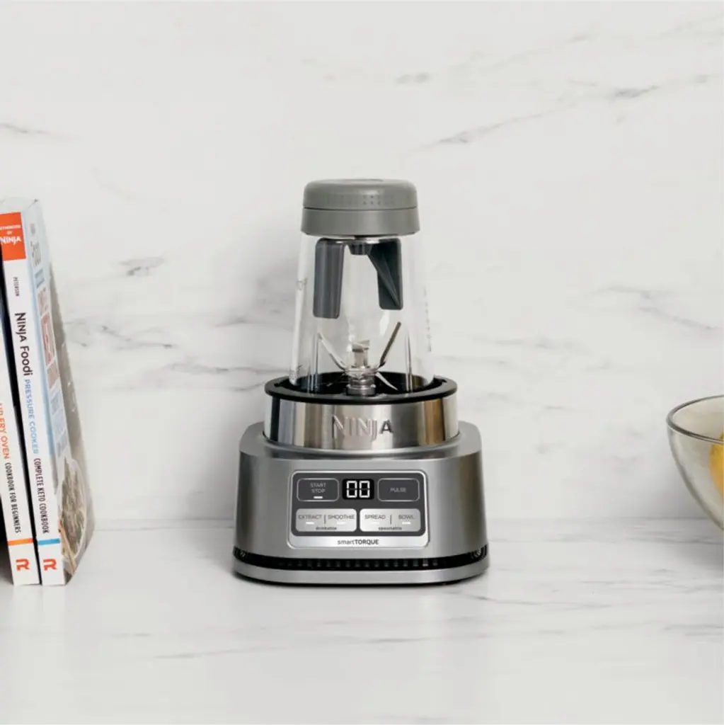 Powered by a 1,400-watt motor, this blender with smartTORQUE technology creates smoothie bowls, bread doughs and nut butters with no stalling, shaking or stirring. The blender features four preset programs: Smoothies, Extractions, Bowls and Spreads. Create spoonable smoothie bowls in the Nutri Bowl or blend right in the lidded tumbler for on-the-go smoothies and frozen drinks.
