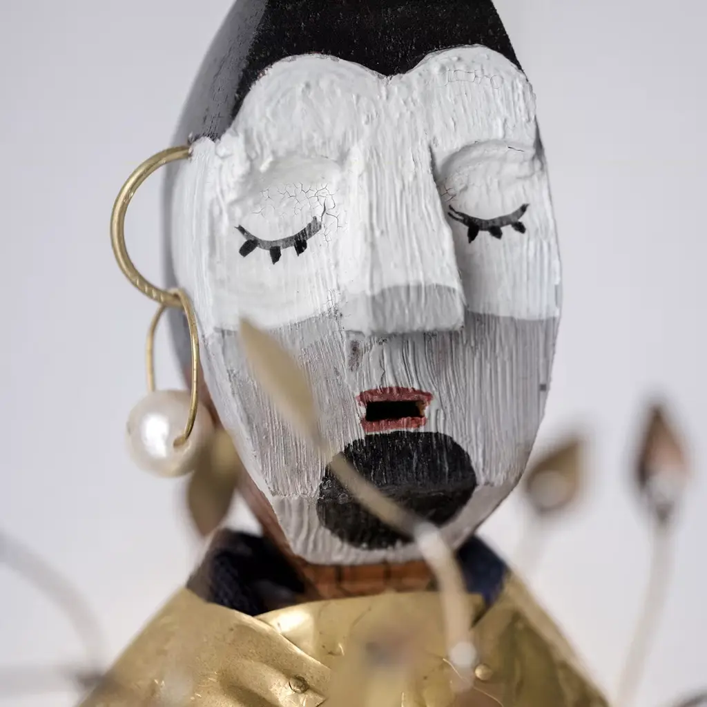A stunning showcase of deft craftsmanship, the renowned Nirù puppet was created with the help of artisan Saverio Zaminga, Antonio Aricò's grandfather. Fashioned of ebony wood, brass, and textiles, the piece depicts the mythical Grifone, a Moor of the Southern Italian tradition, here carrying an olive branch instead of a war weapon.