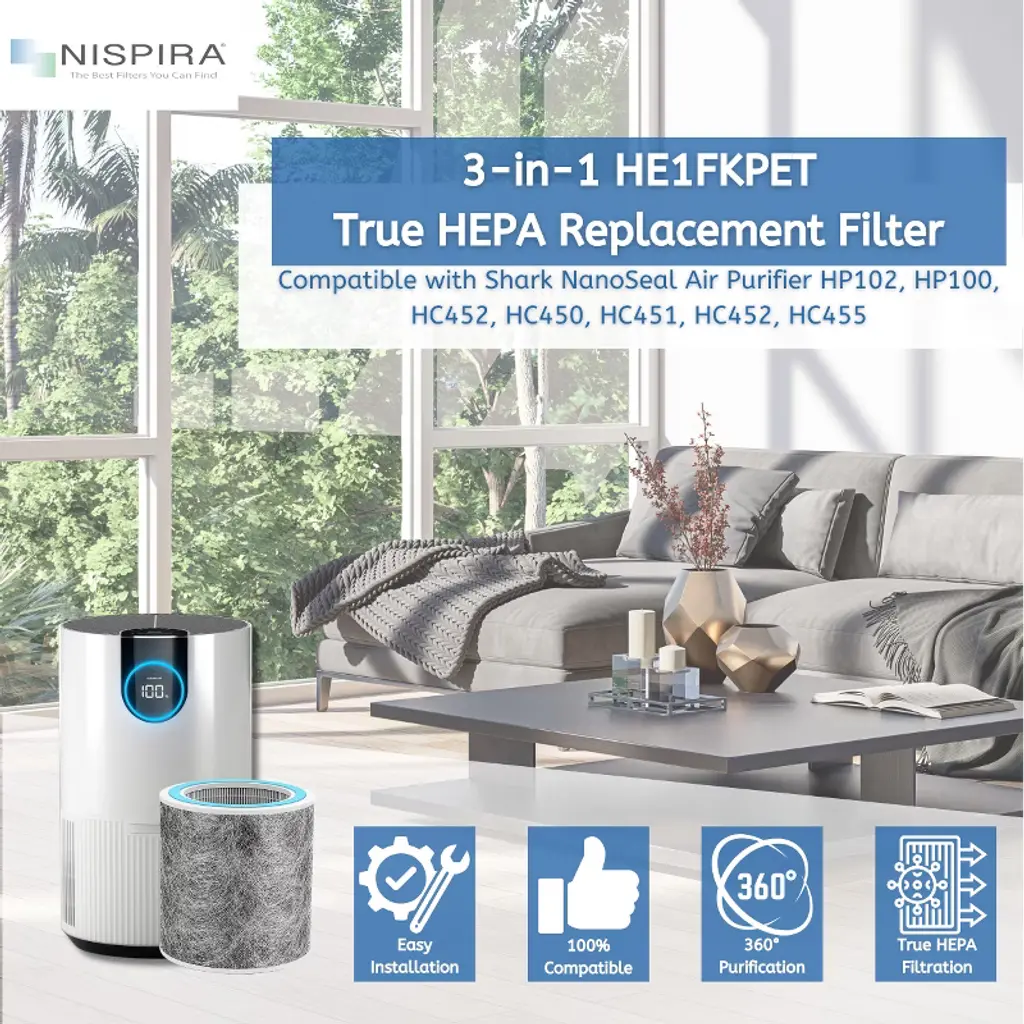 Nispira 3-in-1 He1fkpet True Hepa Activated Carbon Filter Replacement For Shark Nanoseal Air Purifier Hp102 Hp100 Hc452 Hc450 Hc451 Hc452. 3 Packs