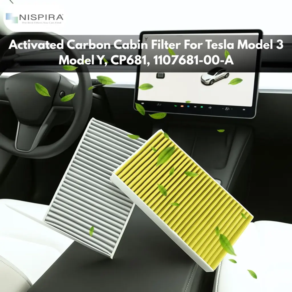 Nispira Activated Carbon Air Filter Replacement For Tesla Model 3 (2017-2021) Model Y (2020-2021), Part 1107681-00-a Cp681, 2 Packs