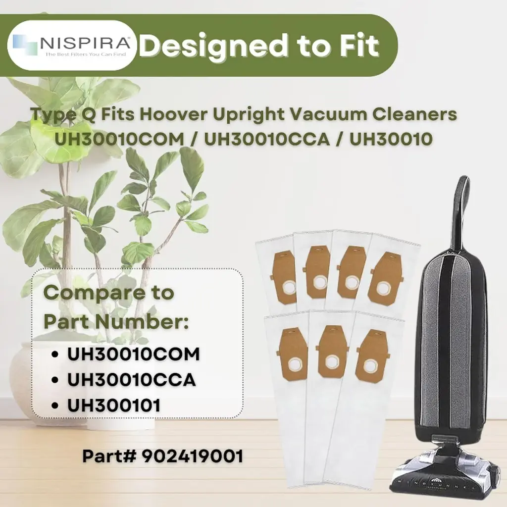 Nispira Ah10000 Type Q Hepa Vacuum Bags Compatible With Hoover Platinum Upright Vacuum Uh30010com Uh30010cca Uh30010, 12 Packs