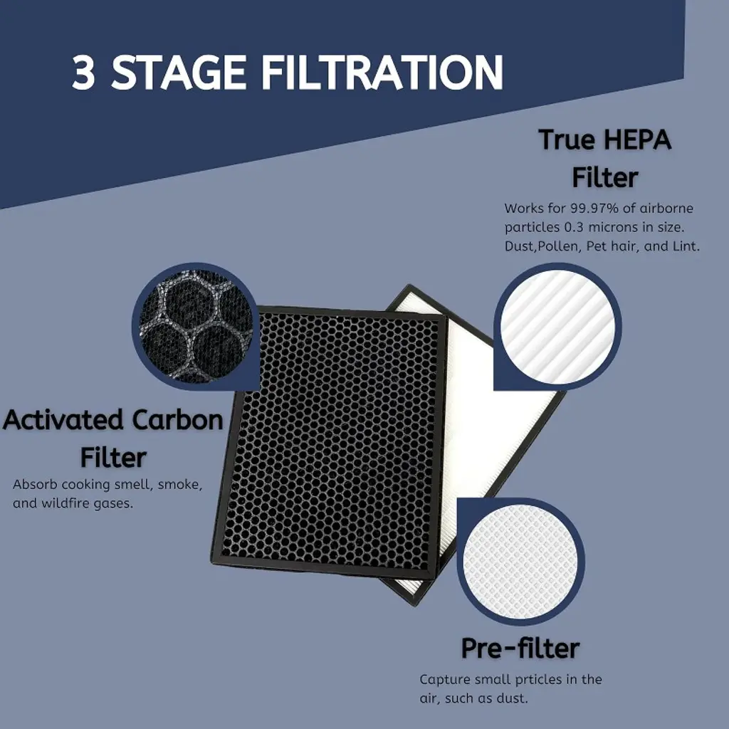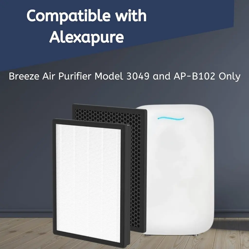 Premium True HEPA with activated carbon filter compatible with Alexapure Breeze Model 3049. 1 set of filter included. Dimension approx. 15" x 11.5" x 2"