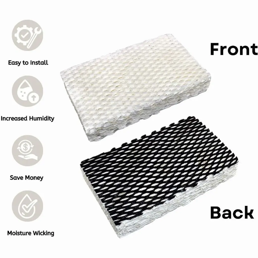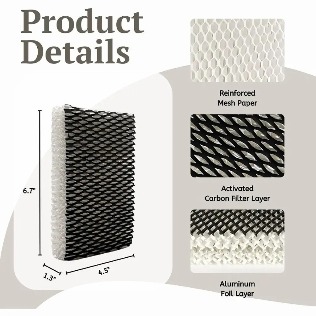A premium humidifier wick filter designed by Nispira. Replacement Humidifier Wicking Filter replacement for Holmes M1200, HM1250, HM1206, HM1200TPK, HM1200TPK1; Replacement for Bionaire BCM1250; Replacement for Halls HLS1200. The humidifier filter replacement features a premium reinforced mesh design that effectively captures hard minerals in water, preventing white dust from circulating in indoor air. Cutting-edge technology enhances moisture absorption and output, boosting efficiency and creating a fresh, comfortable environment. This reduces the impact of dry throat, dry skin, and other related discomforts. 4 Filter Included, Dimensions: 6.7'' x 1.3''x 4.5'' . Tip: Use distilled water for best results and replace filters every 2-3 months, depending on usage.