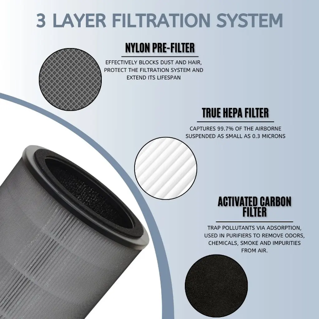 Upgrade your air purifier with the Nispira KF170 Replacement Filter, designed to fit Kenmore PM1005 850e Air Purifier. This 3-in-1 filter combines True HEPA technology to capture 99.97% of airborne particles as small as 0.3 microns, activated carbon to absorb odors and volatile organic compounds (VOCs), and a pre-filter to trap larger particles. With a pack of 1 filter, you can ensure optimal air quality and purification performance in your home or office. Effortlessly replace your old filter and breathe easier with cleaner, fresher air. Maintain your Kenmore air purifier at peak efficiency with this genuine replacement filter.