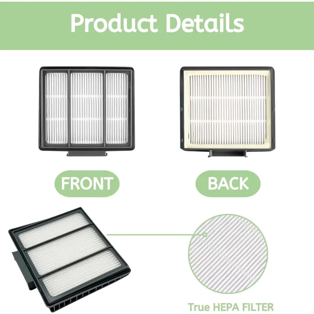 Nispira HEPA filter compatible with Shark Robot Vacuum R71, RV700_N, R72, Shark AI Vacmop Robot AV2001, AV2001WD, R200WD, Shark EZ Robot AV911S, RV912S, RV913S, Shark IQ Robot AV751, AV752, AV753. Compared to original part RVFFK950 & 1172FK870 . HEPA high efficiency filters can efficiently remove 99.9% of air pollutant particles as small as 0.3 microns. Washable / Reusable - Simply rinse with clean water and let it completely air dry before reusing them. Easy to install. Just take out the old filter and put this in. Regular cleaning on the filter is highly recommeded to improve the suction. Suggest to replace the HEPA filter every 6 month to optimize the performance. 10 HEPA filters included. Size: 3.92" x 0.62" x 4"