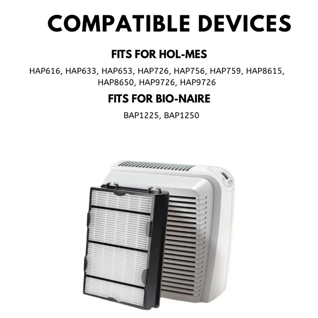 Premium quality true HEPA filter replacement compatible with Holmes¨ part HAPF600. Helps remove up to 99.97 percent of airborne particles as small as 0.3 microns 4 filters included.