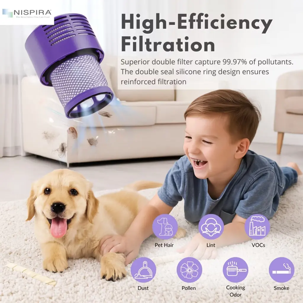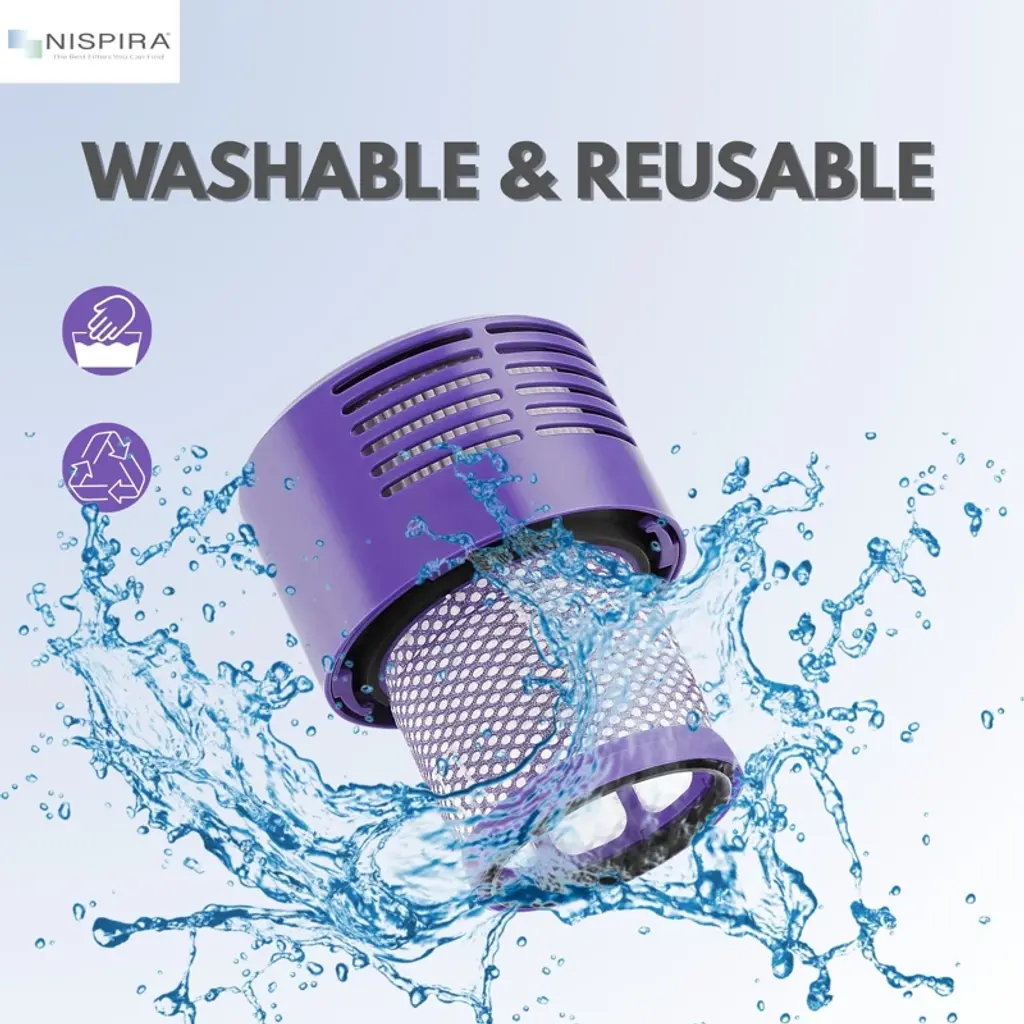 Nispira premium HEPA vacuum filter is made from high-quality materials to ensure durability and long-lasting performance. For enhanced efficiency, the filter is washable and reusable — simply rinse it under clean water and allow it to dry completely before reinstalling. Please ensure the filter is fully dry before installation. The filter is compatible with V10 Cyclone Series, V10 Animal, V10 Absolute, V10 Total Clean, SV12. It is not suitable for Dyson V8, V10, V11, or DC series models. The rear cover attachments for Dyson V10 parts do not need to be removed after installation unless necessary. Our premium filters are crafted with top-quality materials to help keep your home as clean as possible. Dimensions: 2.3” x 4.35” x 3.3” Quantity: 4 filters included For optimal performance, it’s recommended to clean the filter every 2–4 weeks and replace it every 2–3 months. We stand behind our product with a 100% customer satisfaction guarantee. Quality meets or exceeds leading national brands.
