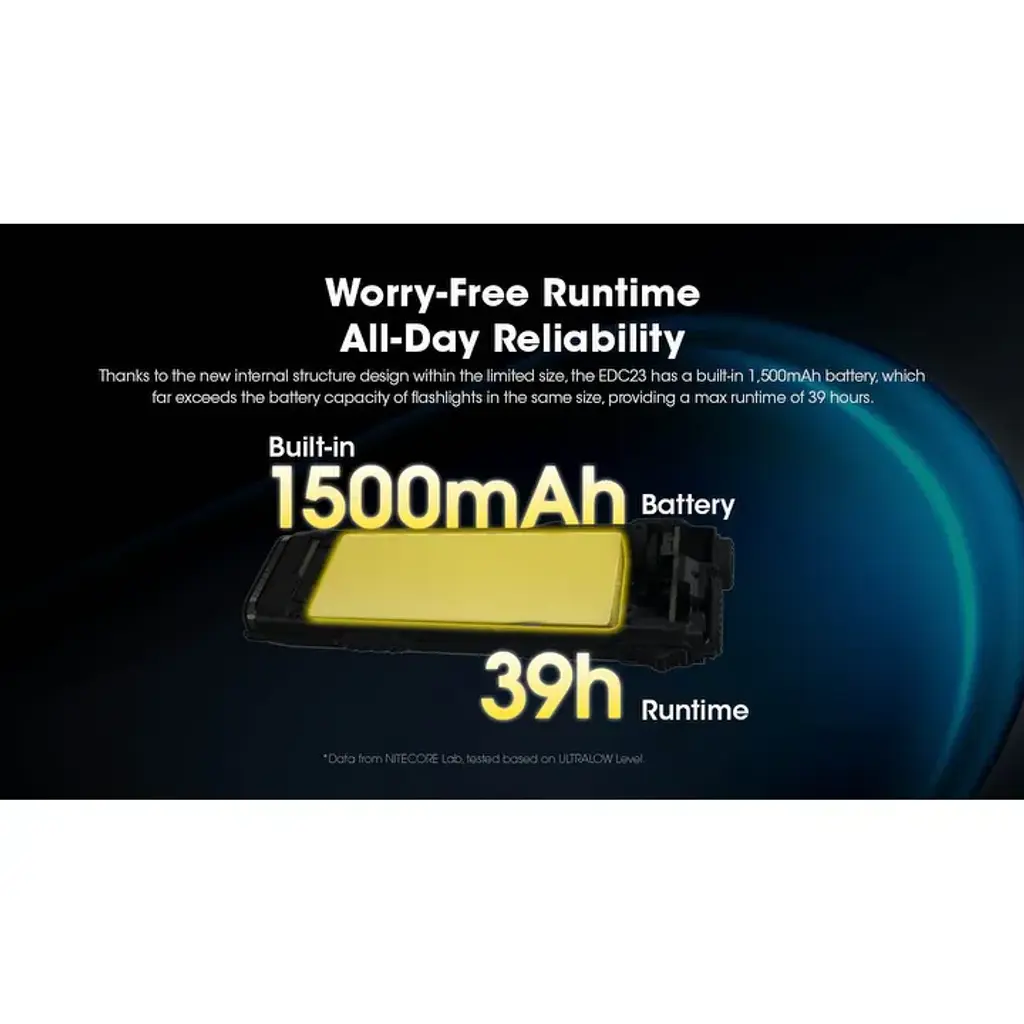 Nitecore Edc23 2500 Lumen Usb-C Rechargeable Ultra-Slim Edc Flashlight - Black - Battery