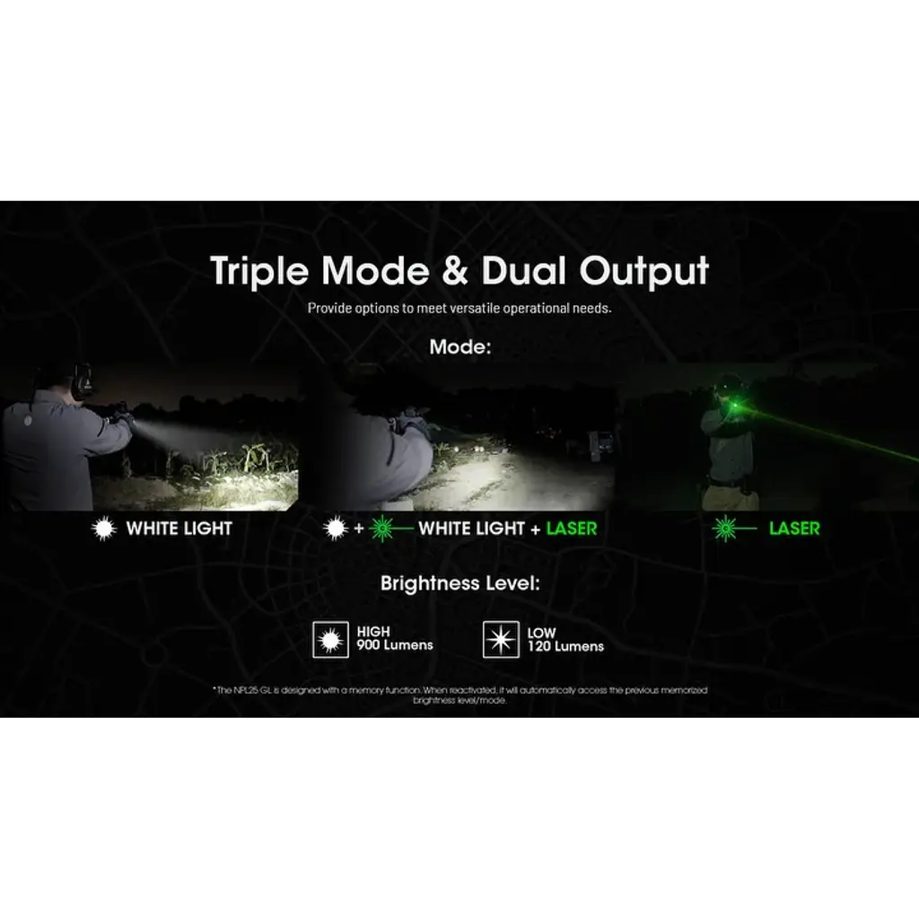 Nitecore Npl25 Gl 900 Lumen Rechargeable Mounted Flashlight With Green Laser Sight - Black - Battery