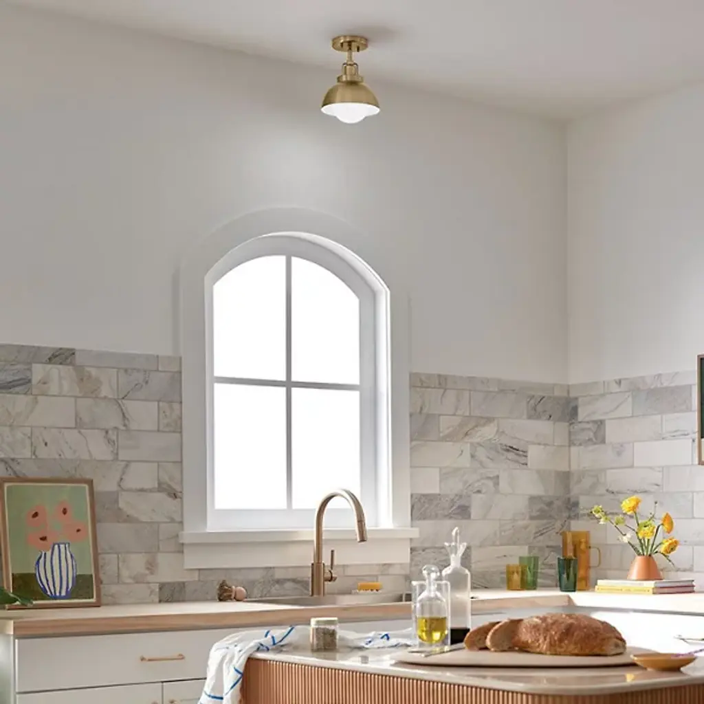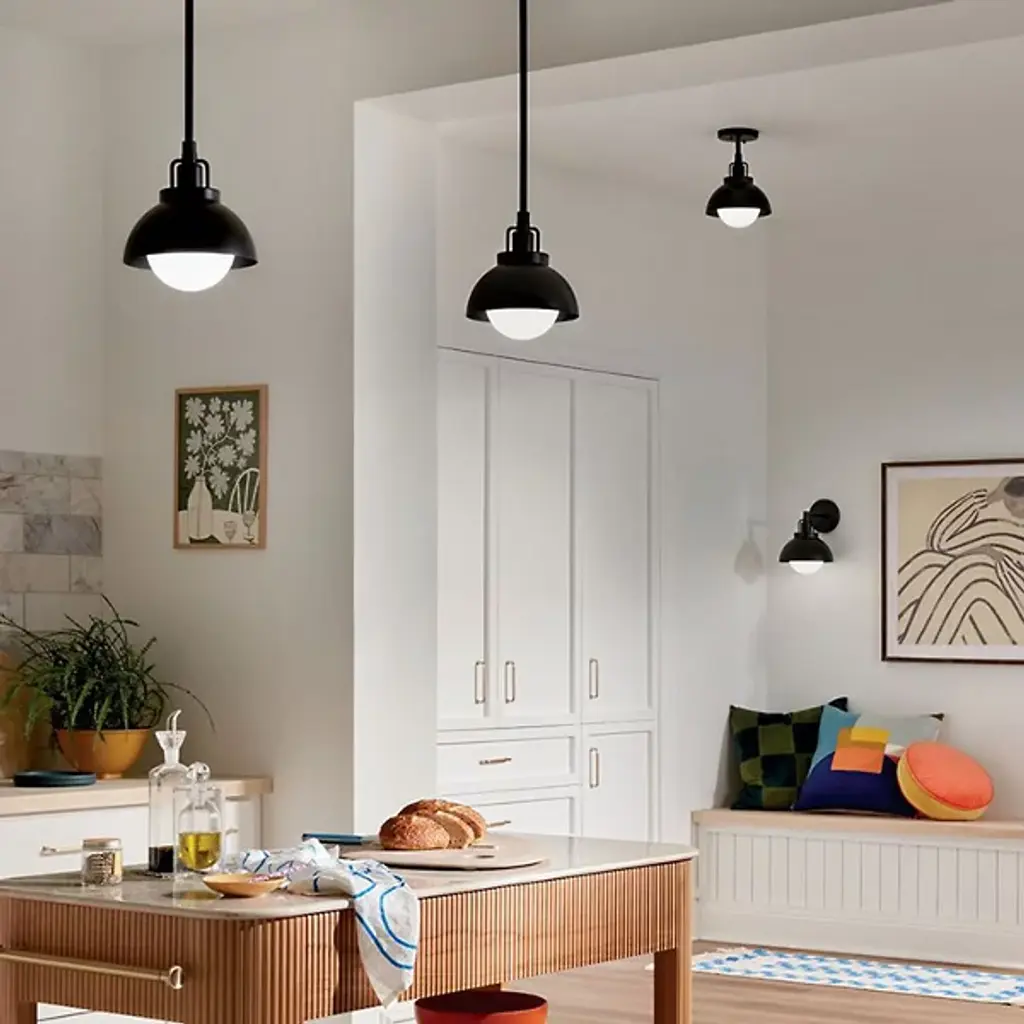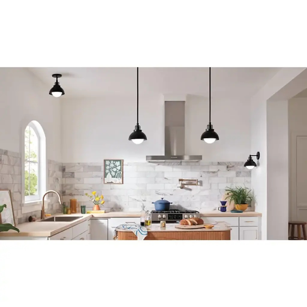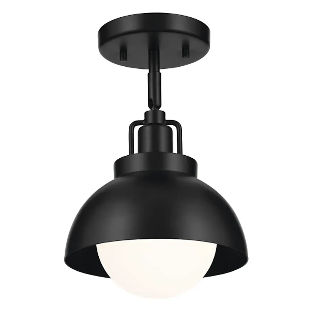 The Niva 11.25 Inch 1 Light Convertible Semi Flushmount by Kichler is a versatile and stylish light fixture that can be used in a variety of settings. The fixture features a modern, geometric design with a single round glass shade that provides soft, diffused light. The Niva can be mounted as a semi-flush or pendant, and it includes a swivel in the semi-flush conversion parts to allow it to hang from a sloped ceiling, making it a flexible option for any space.