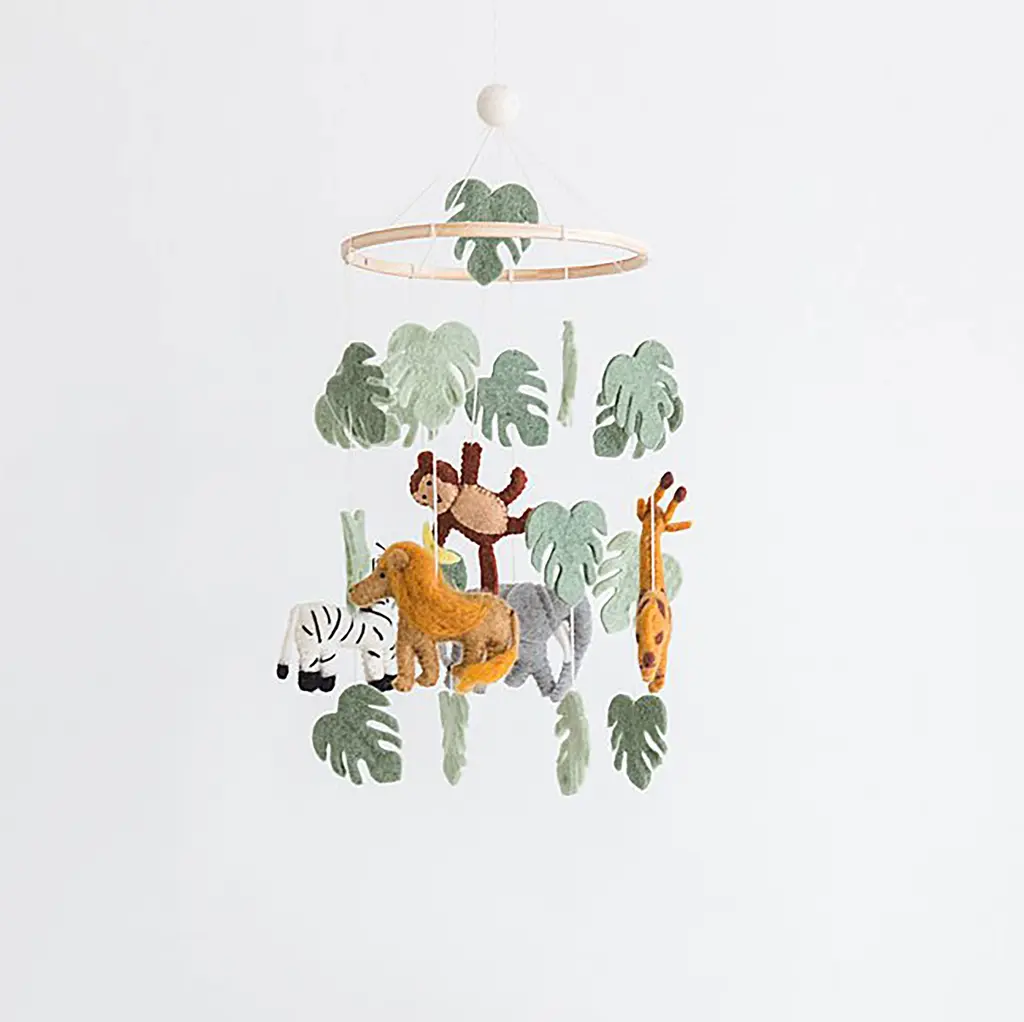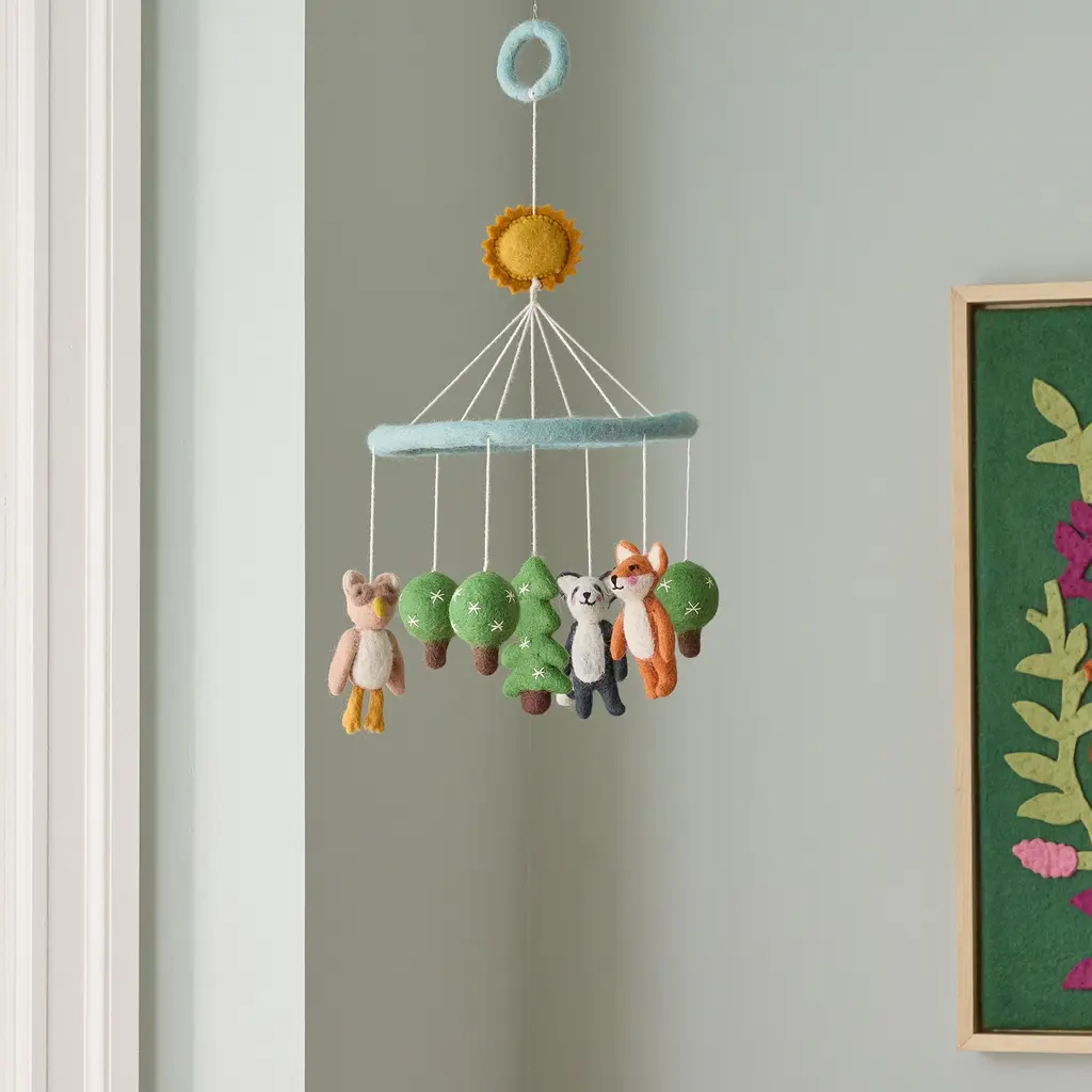 Adds playful, modern design to a nursery. A delightful touch above a crib or rocking chair. Handmade in Nepal from soft wool felt.