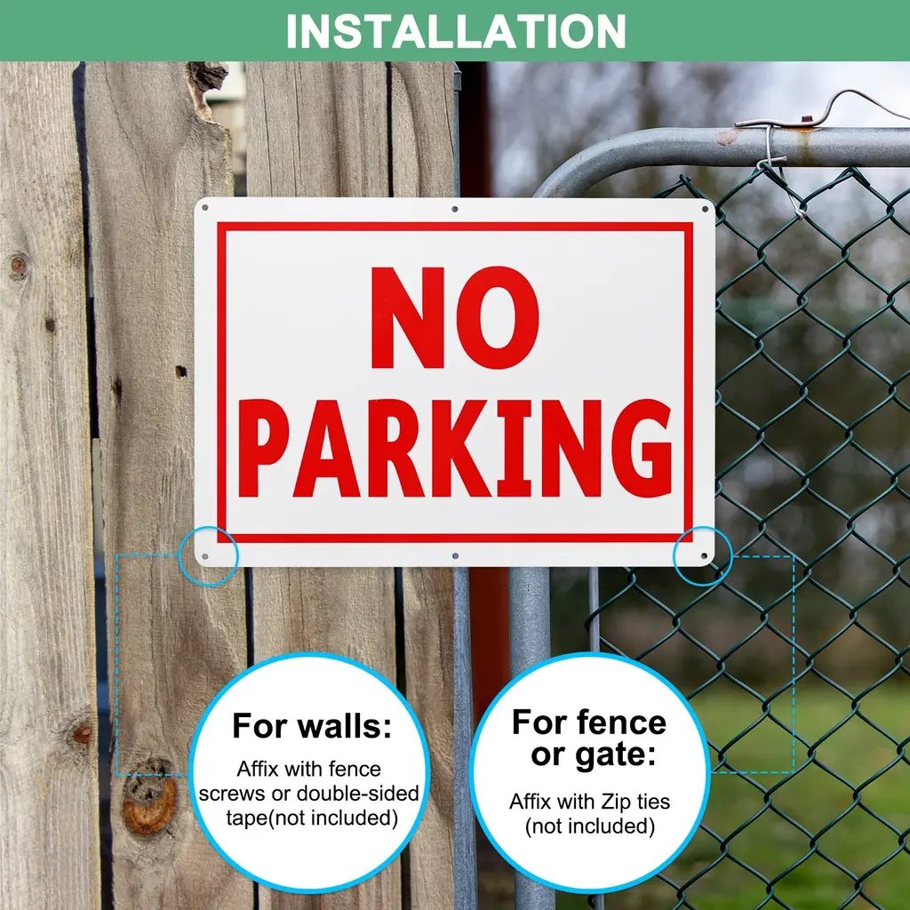 PRODUCT APPLICATIONSThis road reflective warning sign is universal for various applications. They can be used outdoors, home, yard, door, walls, fences, posts, poles, etc.PRODUCT DETAILS & INCLUDE√ Material: Aluminum√ Color: Red Letter On White Background√ Size: 350x250x1mm/13.78x9.84x0.04 Inch(L*W*H)√ Package Includes: 1-Pack x Waterproof Street SignsPRODUCT ADVANTAGES1. Traffic signs are made of aluminum, which is durable, anti-rust, and waterproof, it has good wear resistance and can be used for a long time.2. This street sign has 4 Pre-drilled holes and rounded corners designed for easier installation. Reflective signs are easy to see, reflective aluminum signs illuminate when struck by light from headlights or any other source. This makes the message readable even in dark and low lighting.ATTENTIONBecause of the light, the color and size will be slightly wrong.