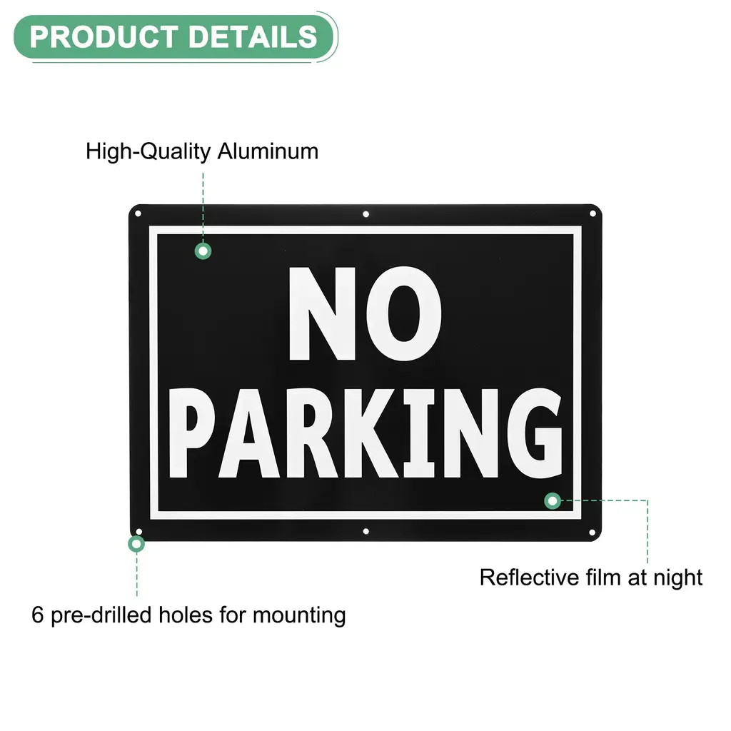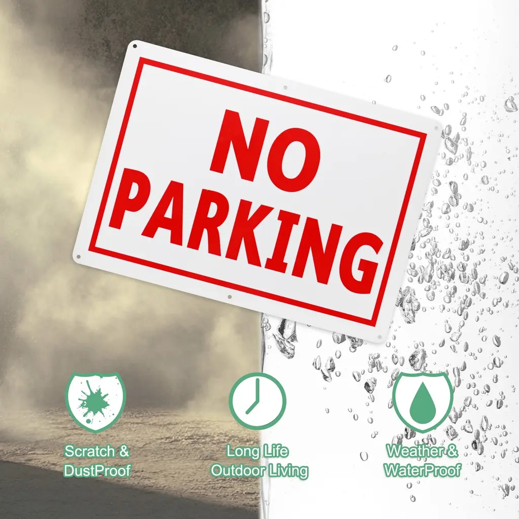 No Parking Sign Without P 14x10" Aluminum - Red Letters On White Background - 4 Pcs