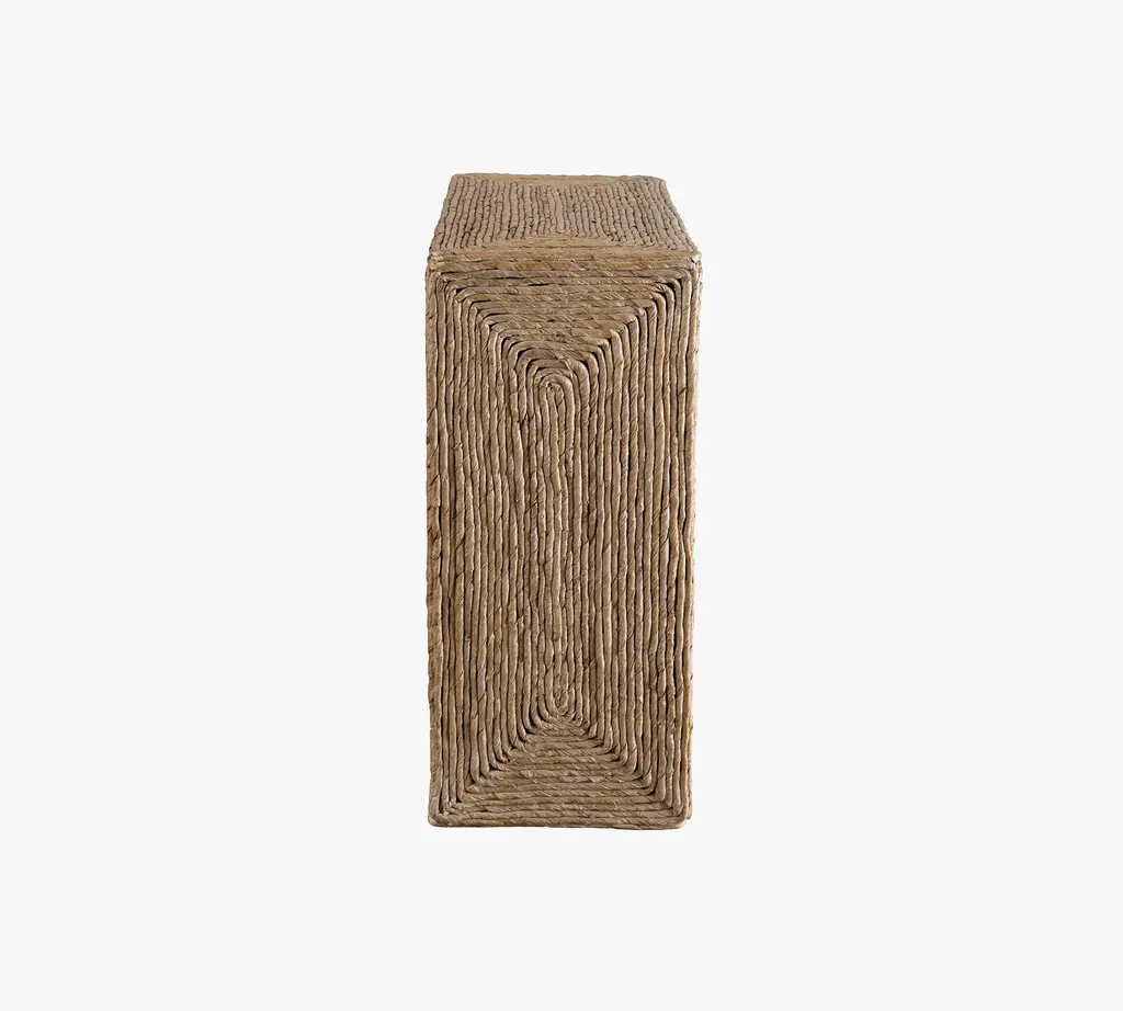 Relaxed and effortless. The concentric pattern of this collection gives it modern appeal, while the warm texture of the natural fiber is distinctly casual coastal. It has a breezy, sun-drenched style that mixes well.