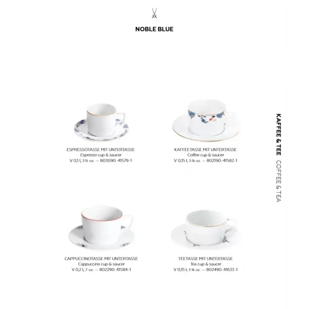 In “Noble Blue”, the historical “Onion Pattern” takes on a modern guise, contrasting the opulence of its precursor with modern esprit and accents in red and gold. Founded in 1710 by King Augustus the Strong, Meissen is the oldest porcelain manufactory in Europe and enjoys worldwide acclaim for its exceptional craftsmanship. Meissen and its crossed swords insignia are synonymous with the highest quality porcelain; every Meissen piece is entirely crafted in-house in the state of Saxony (Germany).